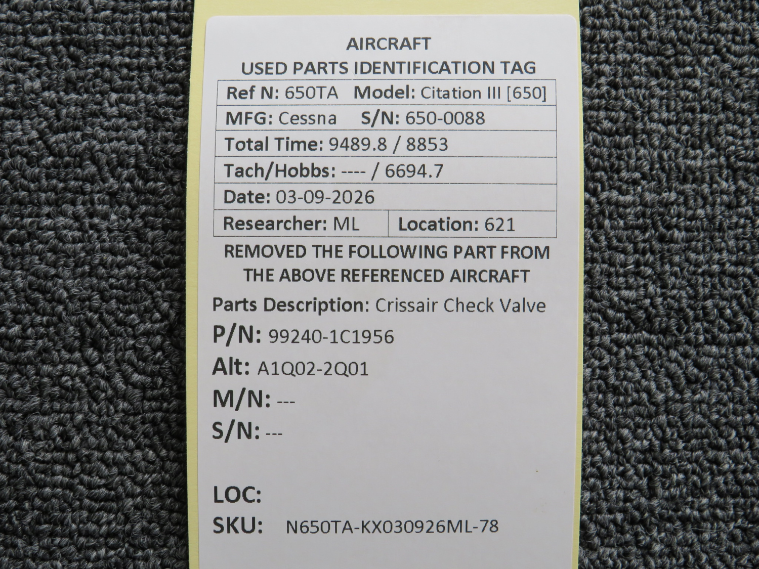 Every part is carefully inspected throughout our process and several times before it goes online. Most items are sold as-removed, just as they came off the aircraft. These parts are not functionally tested. What we do provide is clear photos, full traceability when available, pricing that reflects the as-removed condition, and a no-nonsense 90-day return window.