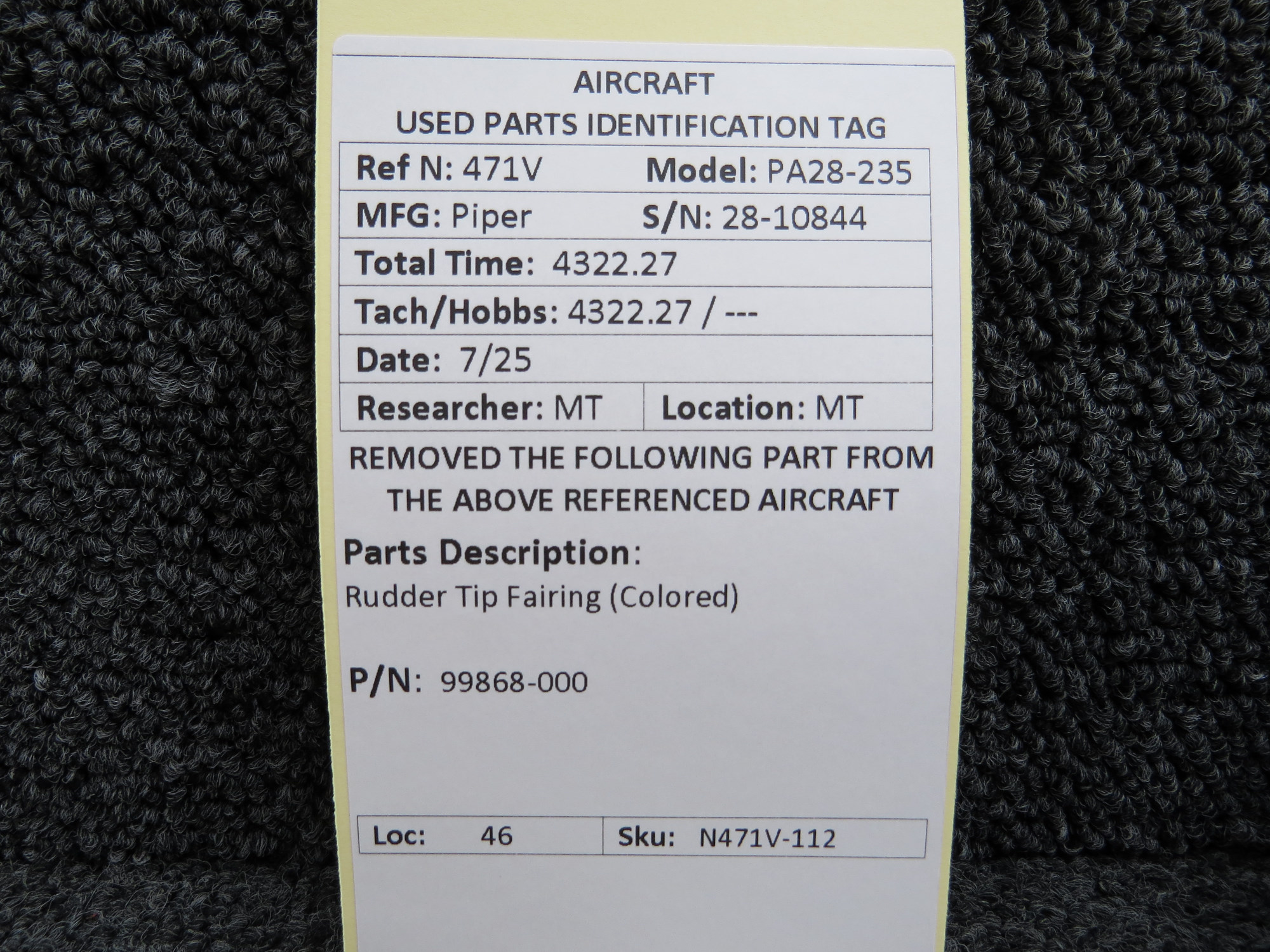 Unless specifically noted, most of our used airplane parts are sold in the condition they were removed, which means you should expect the usual signs of wear and tear.