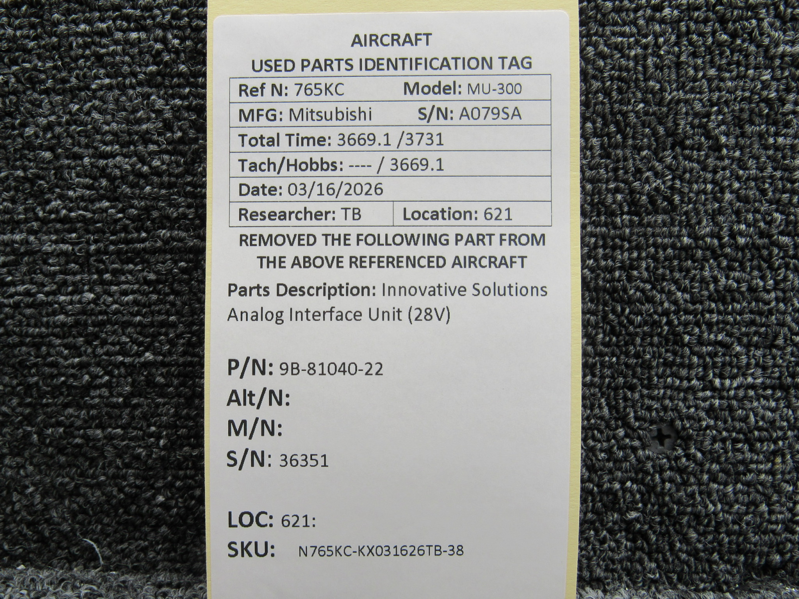 Every part is carefully inspected throughout our process and several times before it goes online. Most items are sold as-removed, just as they came off the aircraft. These parts are not functionally tested. What we do provide is clear photos, full traceability when available, pricing that reflects the as-removed condition, and a no-nonsense 90-day return window.