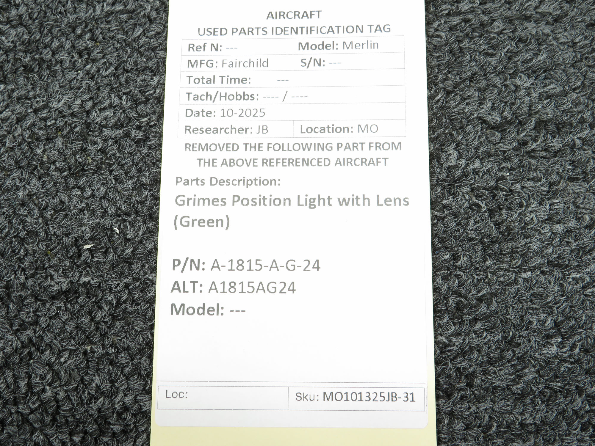 Unless specifically noted, most of our used airplane parts are sold in the condition they were removed, which means you should expect the usual signs of wear and tear.