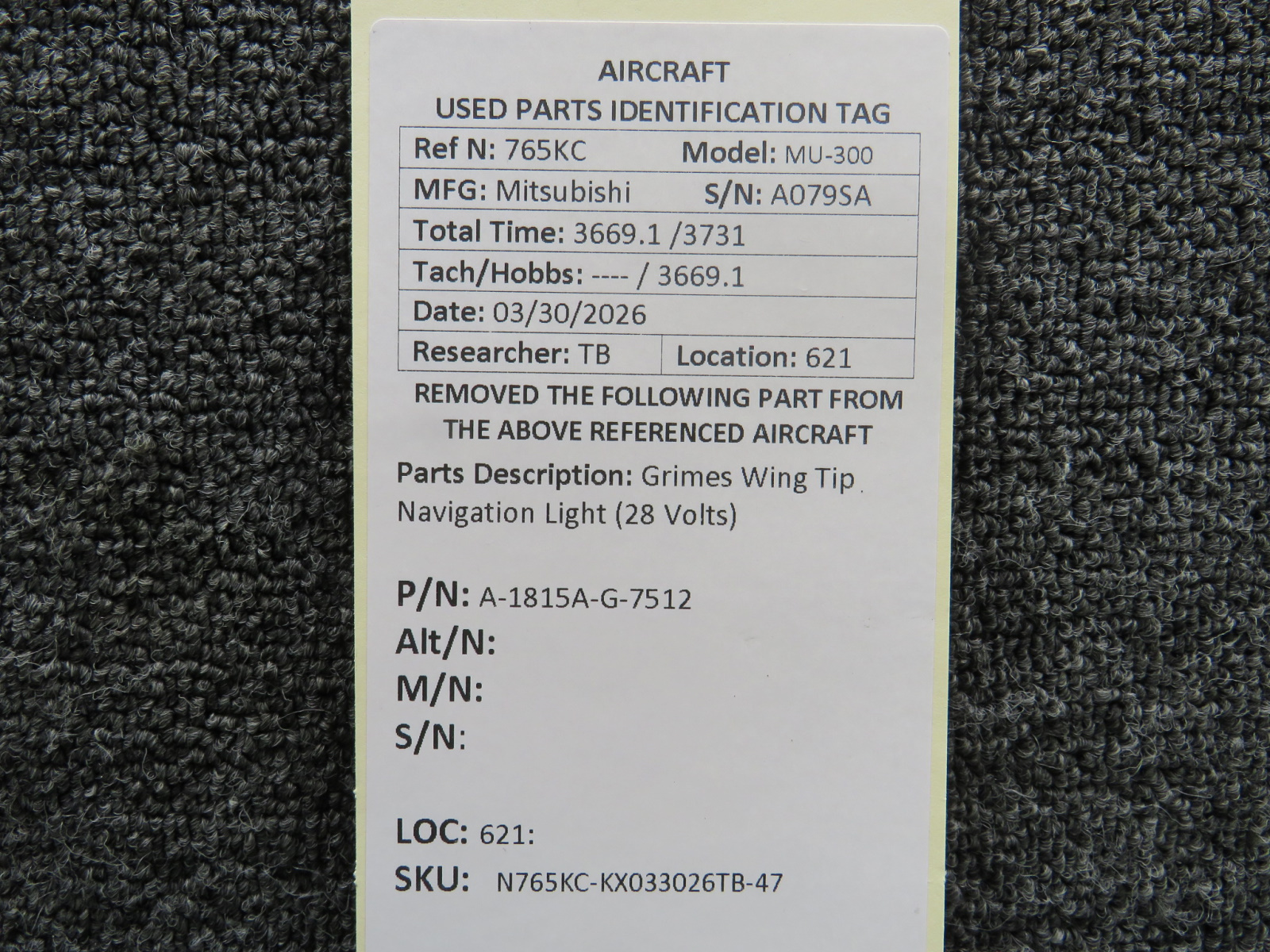 Every part is carefully inspected throughout our process and several times before it goes online. Most items are sold as-removed, just as they came off the aircraft. These parts are not functionally tested. What we do provide is clear photos, full traceability when available, pricing that reflects the as-removed condition, and a no-nonsense 90-day return window.