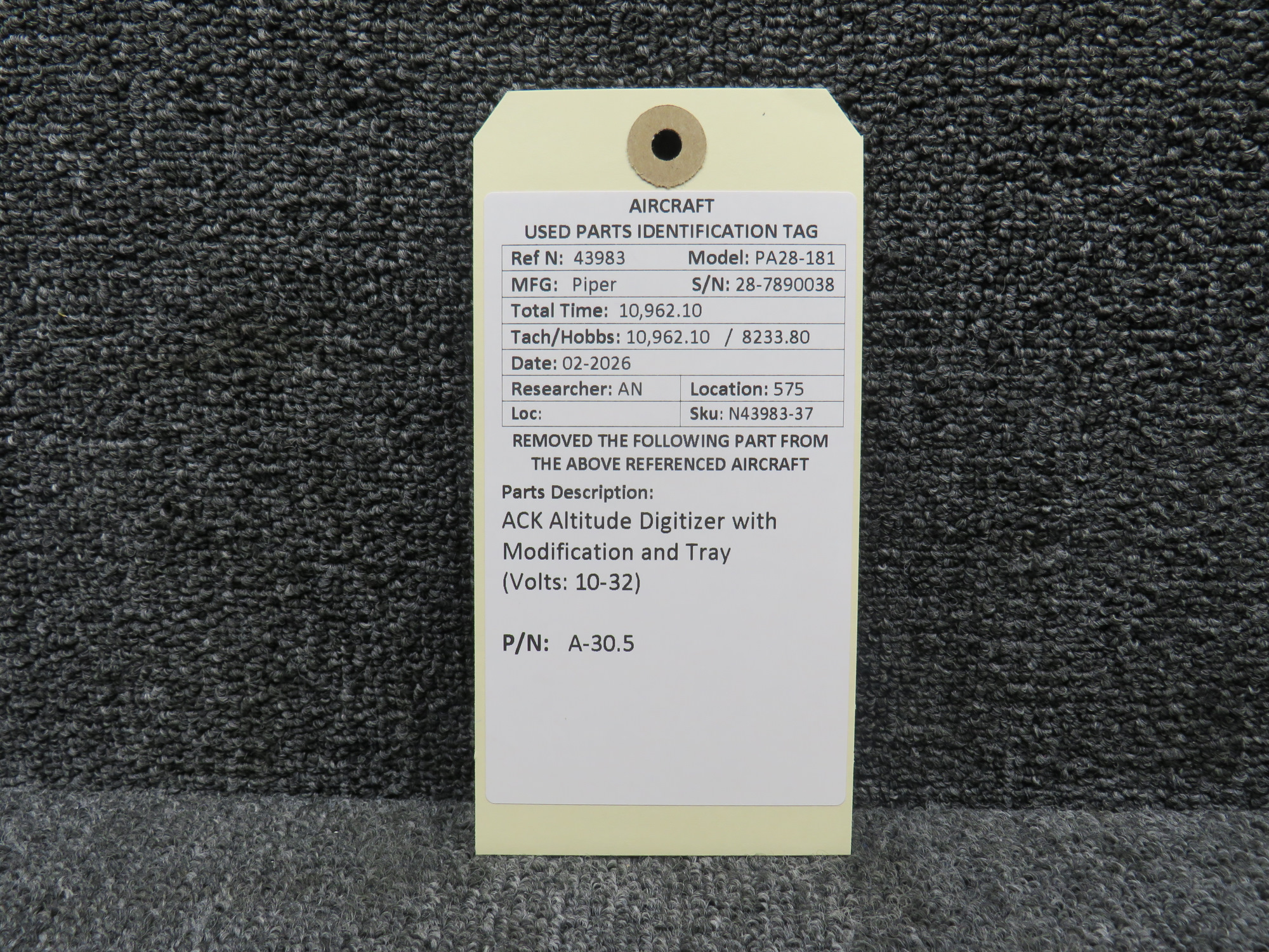 Part removed from aircraft in its original, unaltered state. Most of the inventory available from BAS Part Sales is in As-Removed condition. We removed it from the aircraft in working condition and expect it to pass inspection. As-Removed items come with our 90-day Money-Back Guarantee. Read More