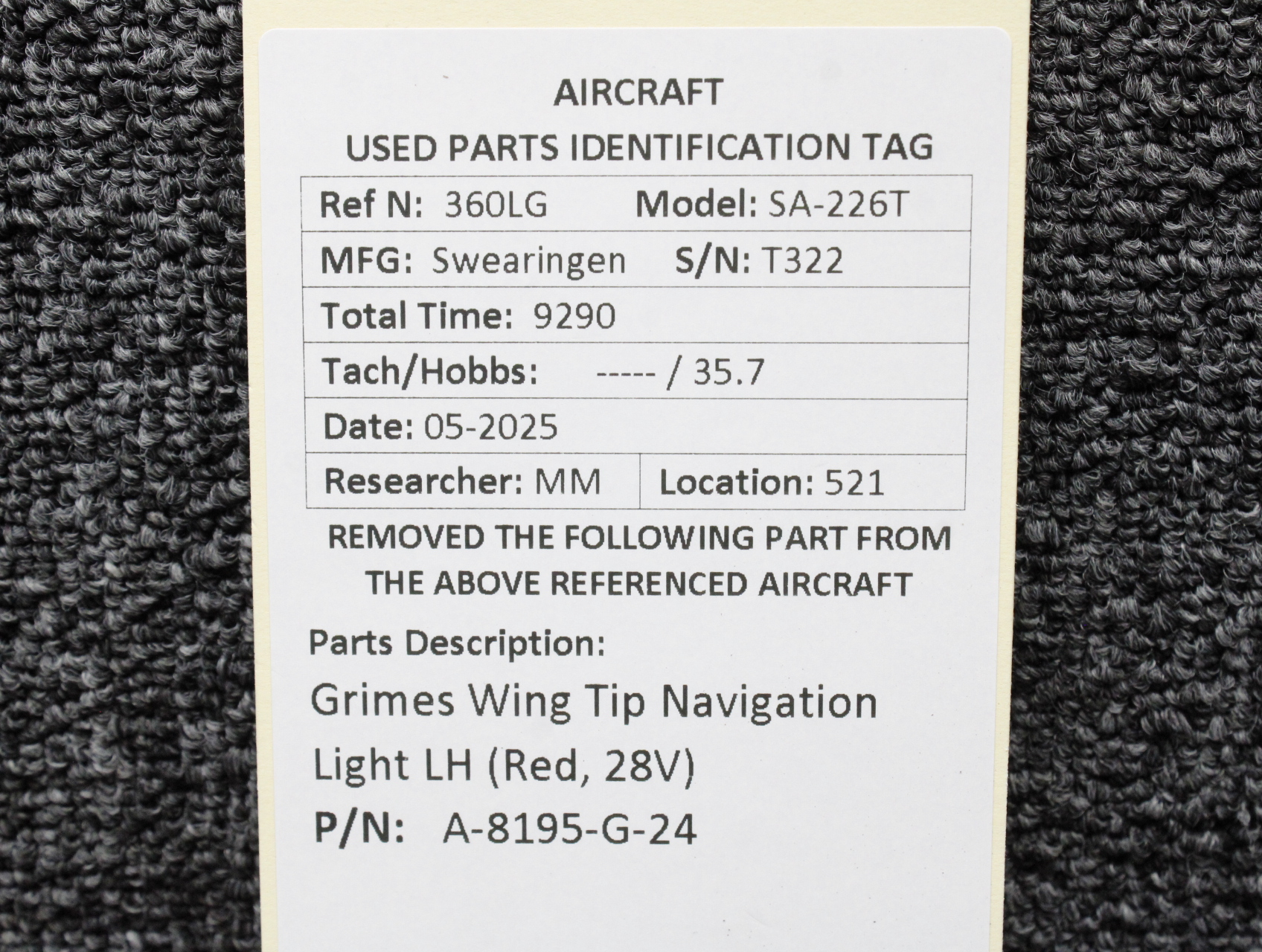 Unless specifically noted, most of our used airplane parts are sold in the condition they were removed, which means you should expect the usual signs of wear and tear.