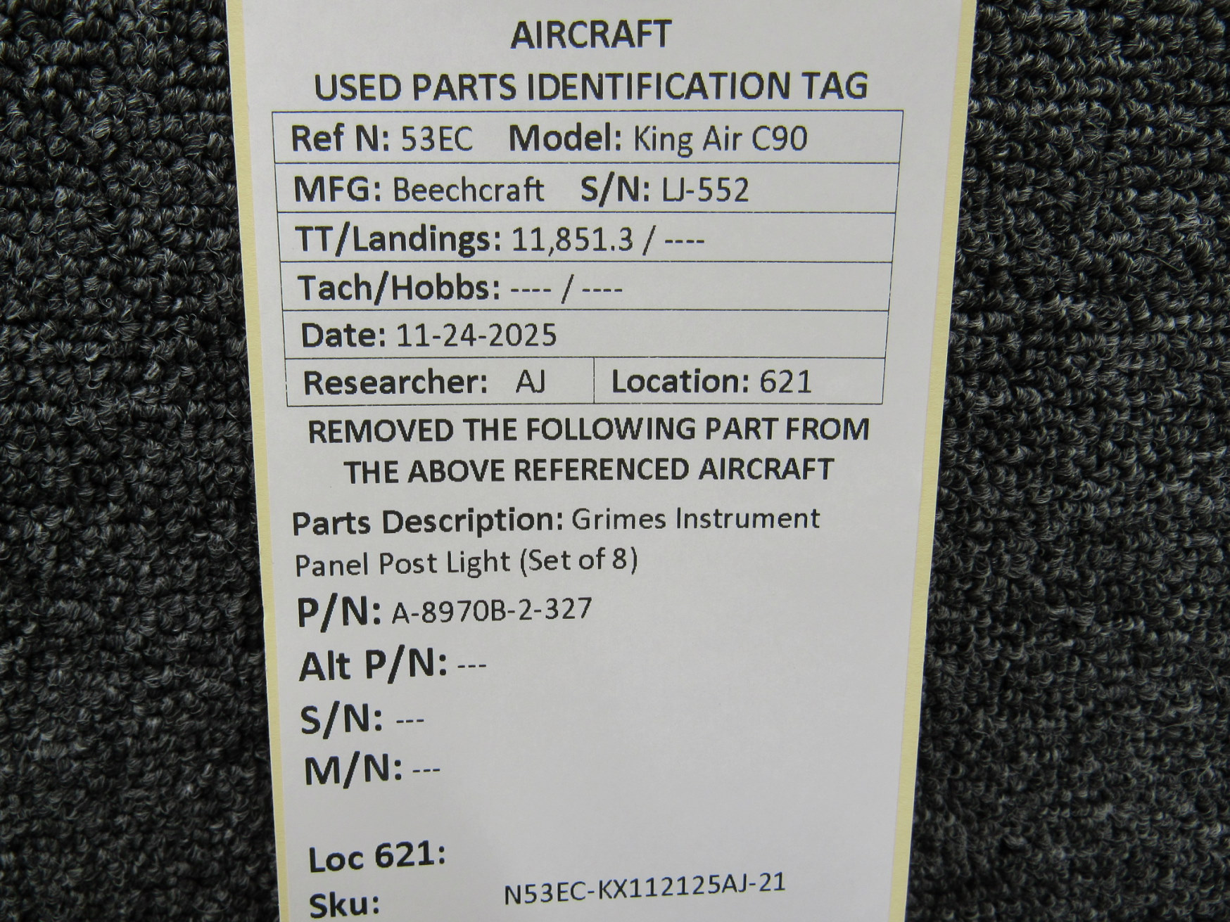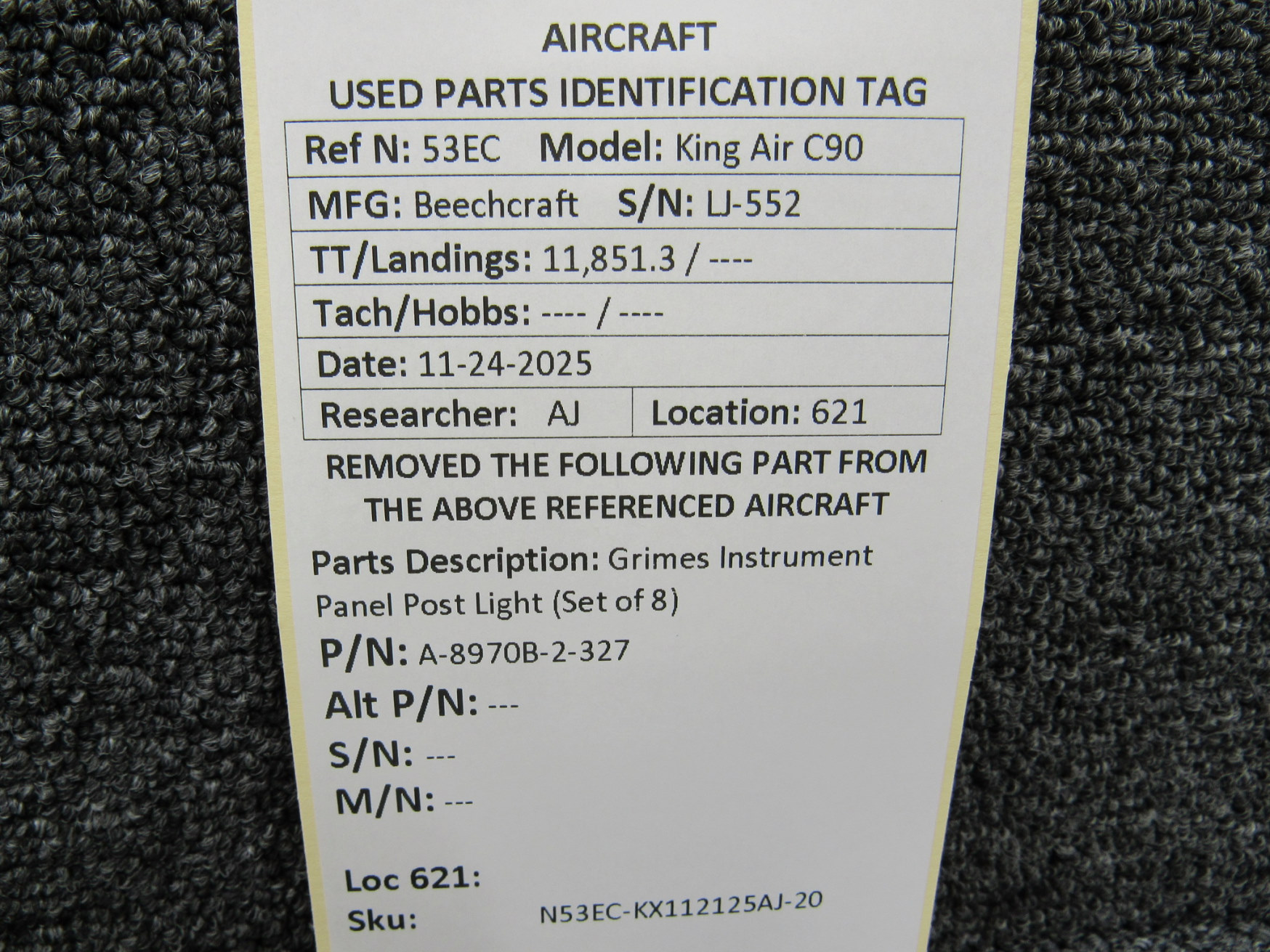 Unless specifically noted, most of our used airplane parts are sold in the condition they were removed, which means you should expect the usual signs of wear and tear.