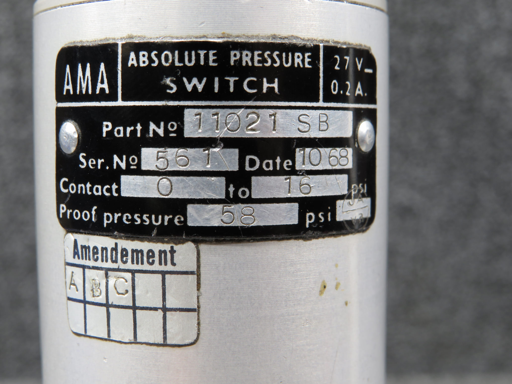 - 1-1021SB- Jaeger Pressure Switch