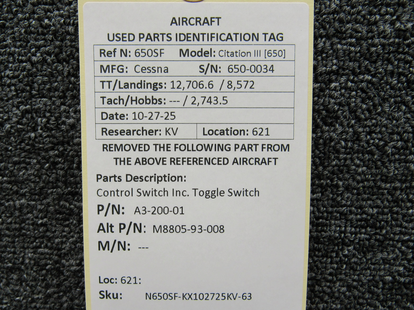 Every part is carefully inspected throughout our process and several times before it goes online. Most items are sold as-removed, just as they came off the aircraft. These parts are not functionally tested. What we do provide is clear photos, full traceability when available, pricing that reflects the as-removed condition, and a no-nonsense 90-day return window.