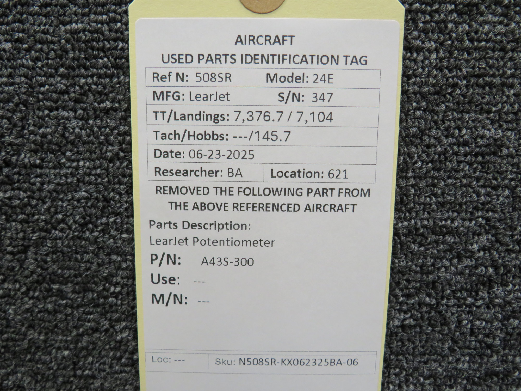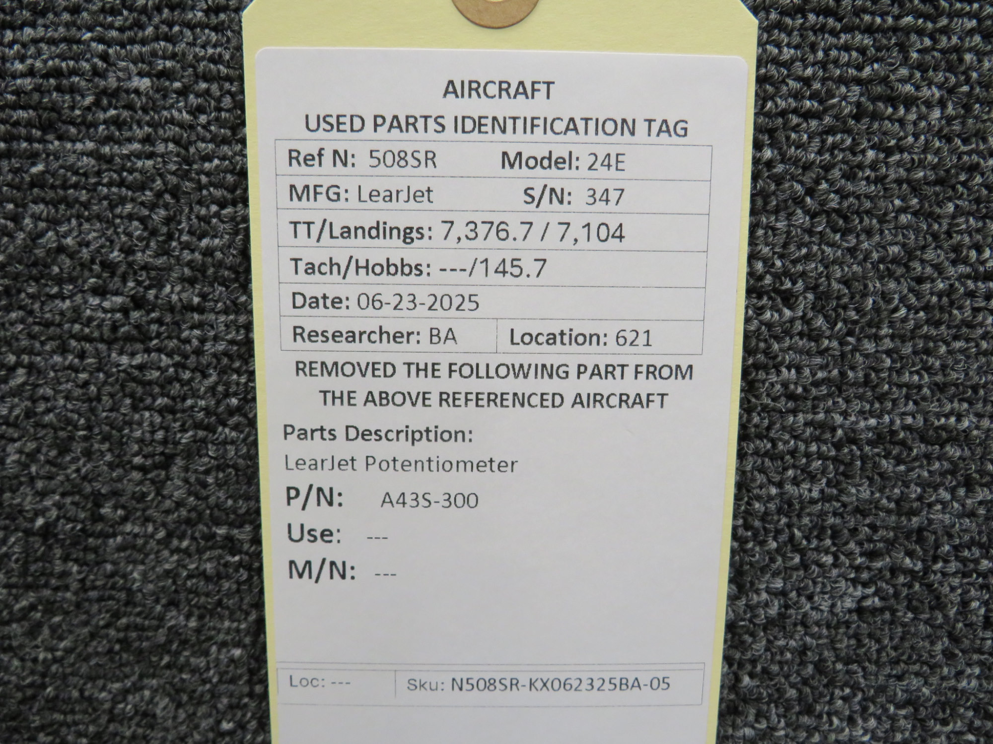 Unless specifically noted, most of our used airplane parts are sold in the condition they were removed, which means you should expect the usual signs of wear and tear.