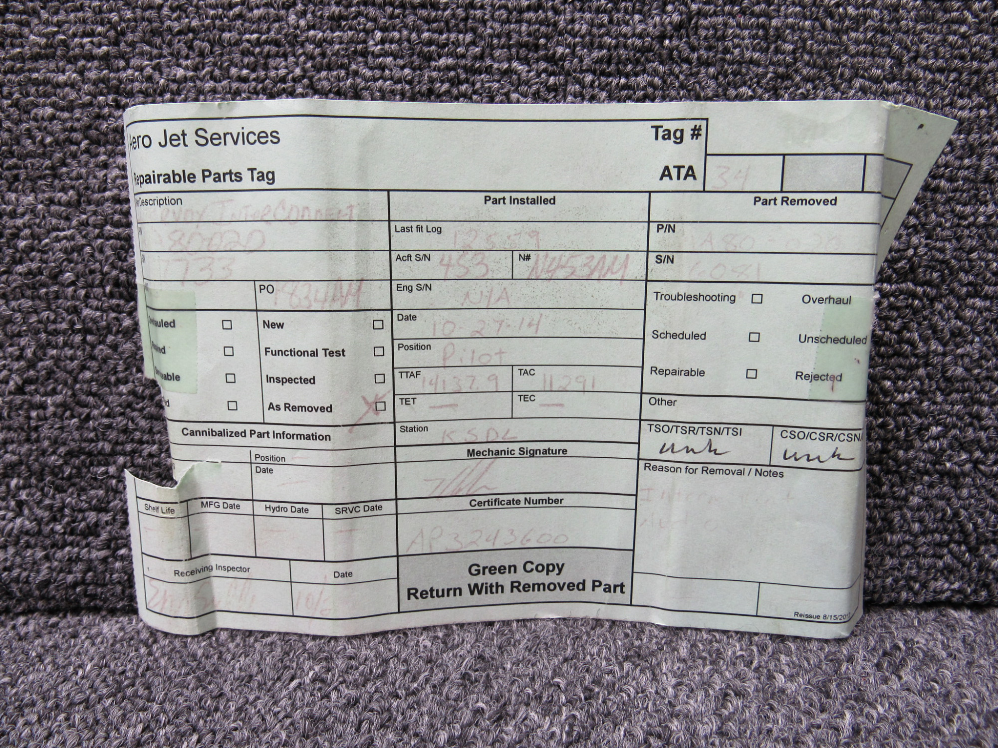 Part removed from aircraft in its original, unaltered state. Most of the inventory available from BAS Part Sales is in As-Removed condition. We removed it from the aircraft in working condition and expect it to pass inspection. As-Removed items come with our 90-day Money-Back Guarantee. Read More