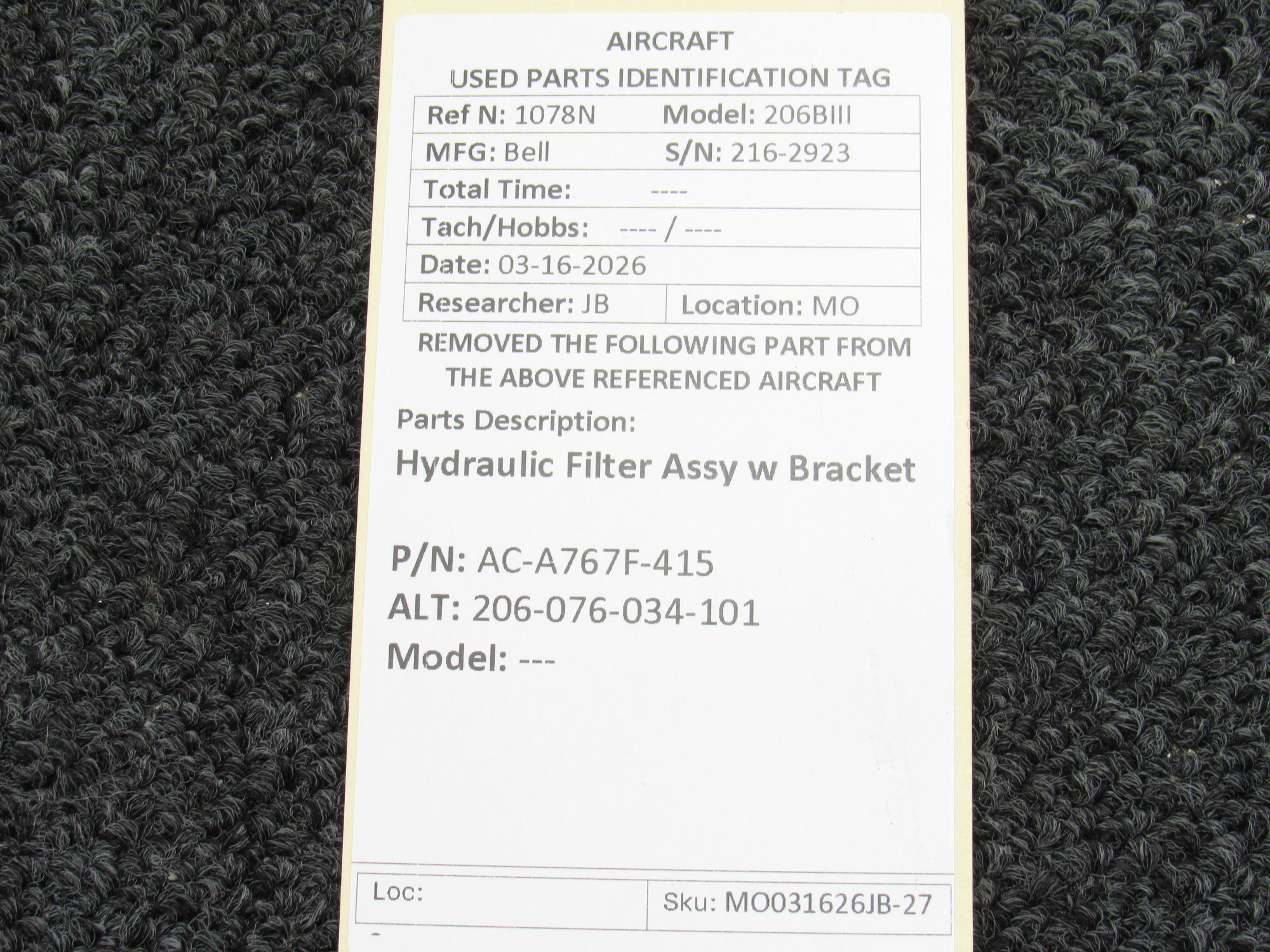 Every part is carefully inspected throughout our process and several times before it goes online. Most items are sold as-removed, just as they came off the aircraft. These parts are not functionally tested. What we do provide is clear photos, full traceability when available, pricing that reflects the as-removed condition, and a no-nonsense 90-day return window.