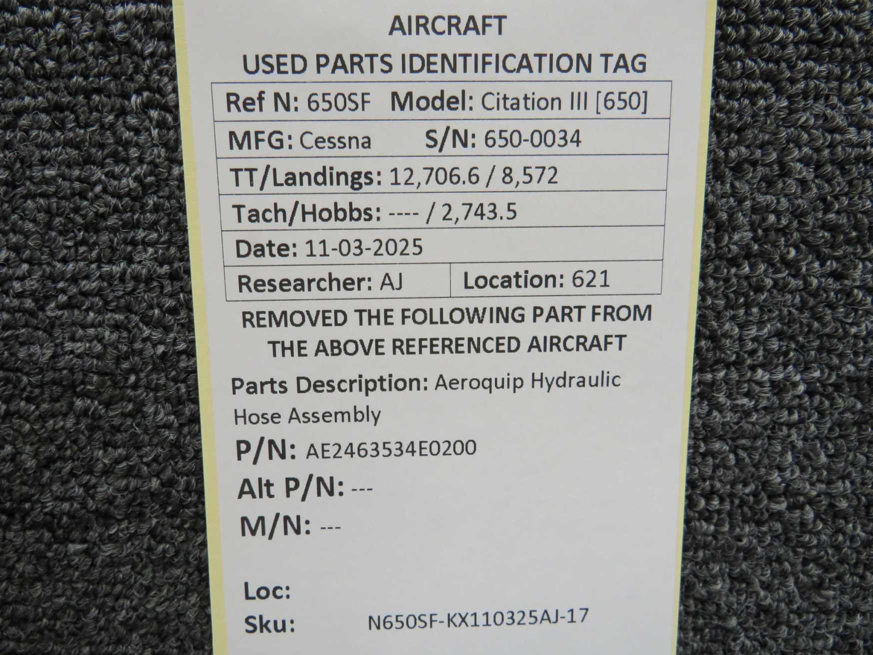 Unless specifically noted, most of our used airplane parts are sold in the condition they were removed, which means you should expect the usual signs of wear and tear.