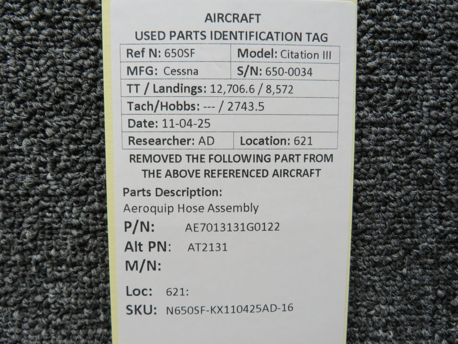 Unless specifically noted, most of our used airplane parts are sold in the condition they were removed, which means you should expect the usual signs of wear and tear.