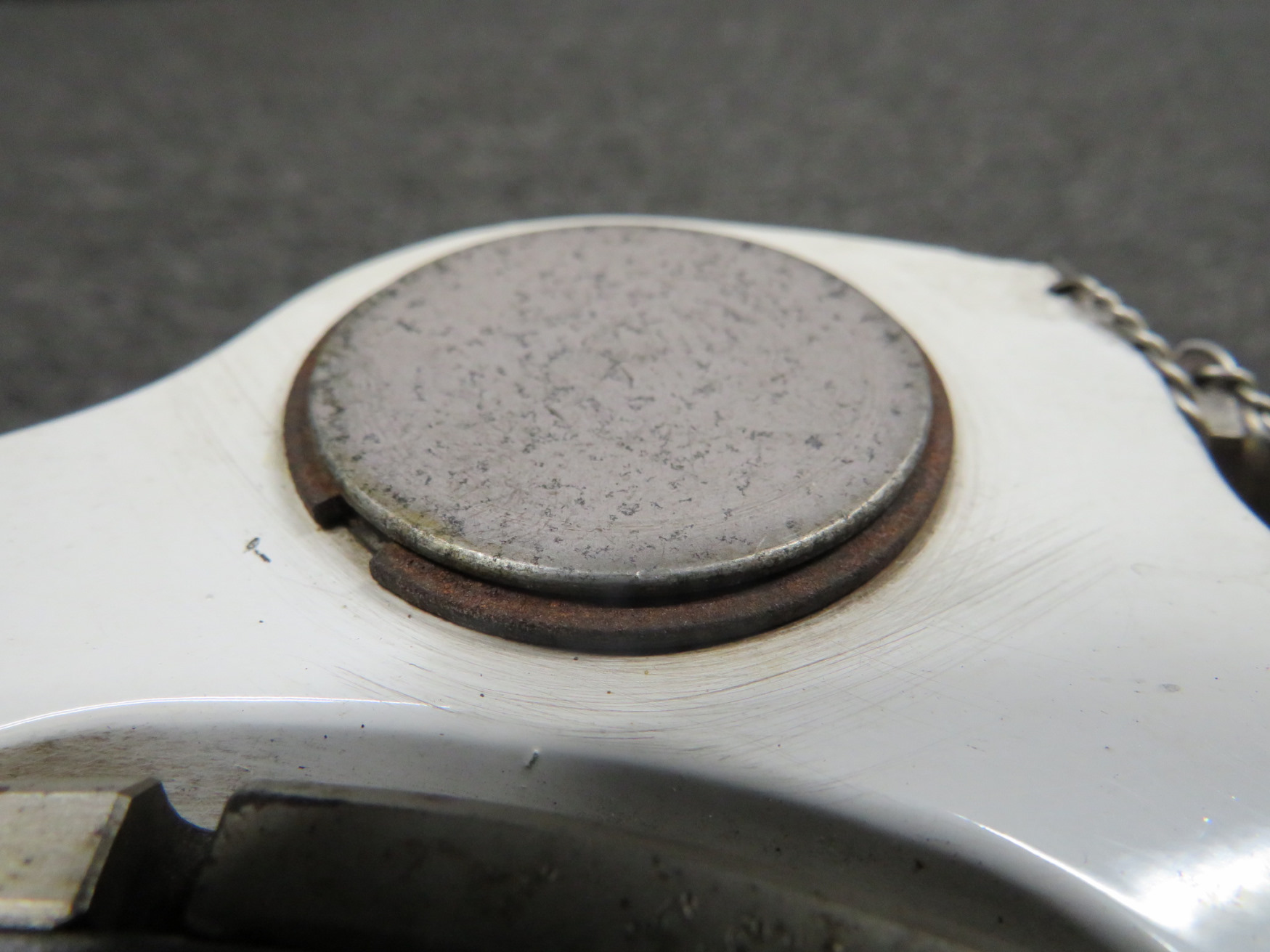 - Rust around attachment hole.