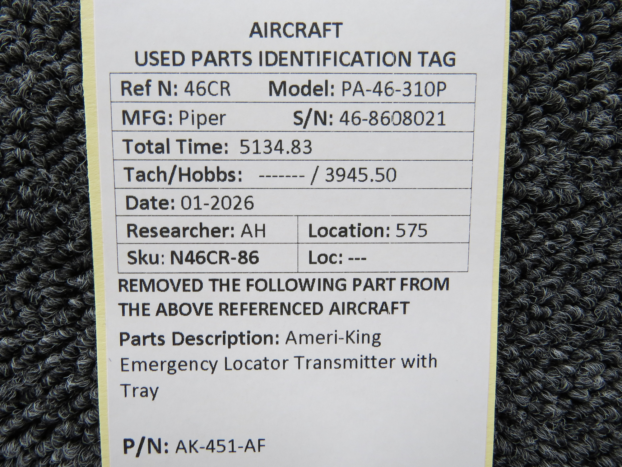 Unless specifically noted, most of our used airplane parts are sold in the condition they were removed, which means you should expect the usual signs of wear and tear.