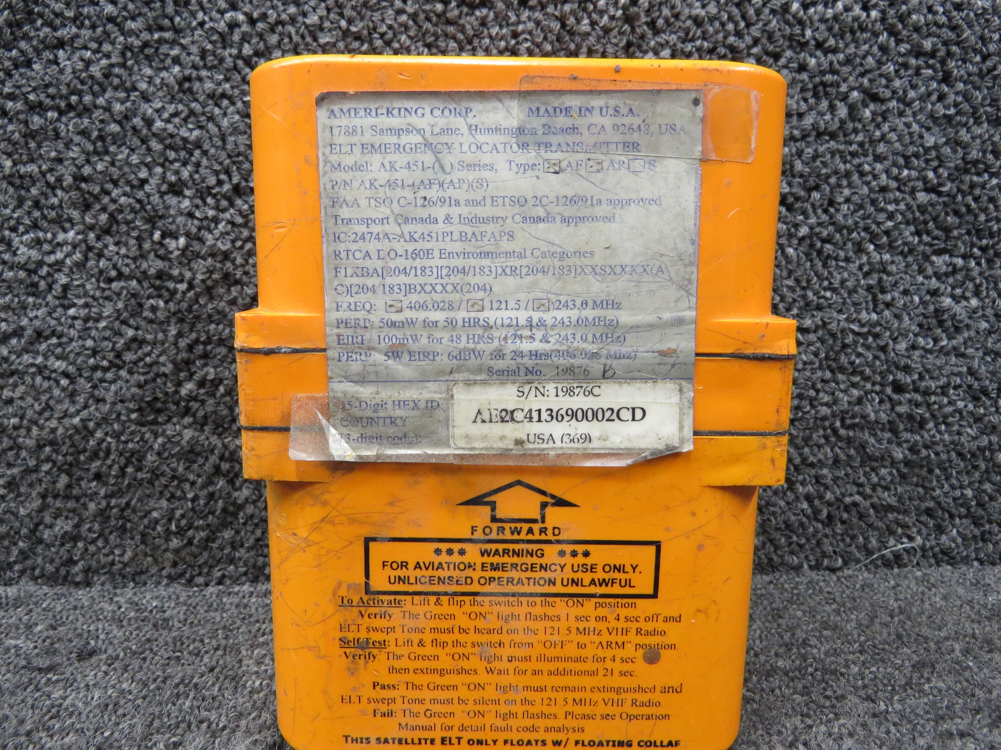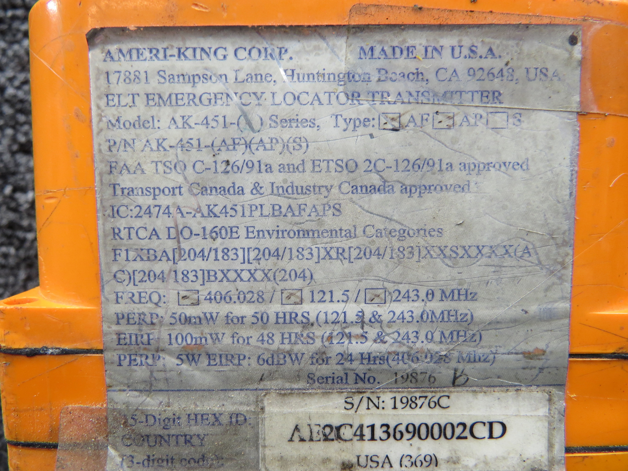 - Frequency: 406.028 / 121.5 / 243.0 MHz