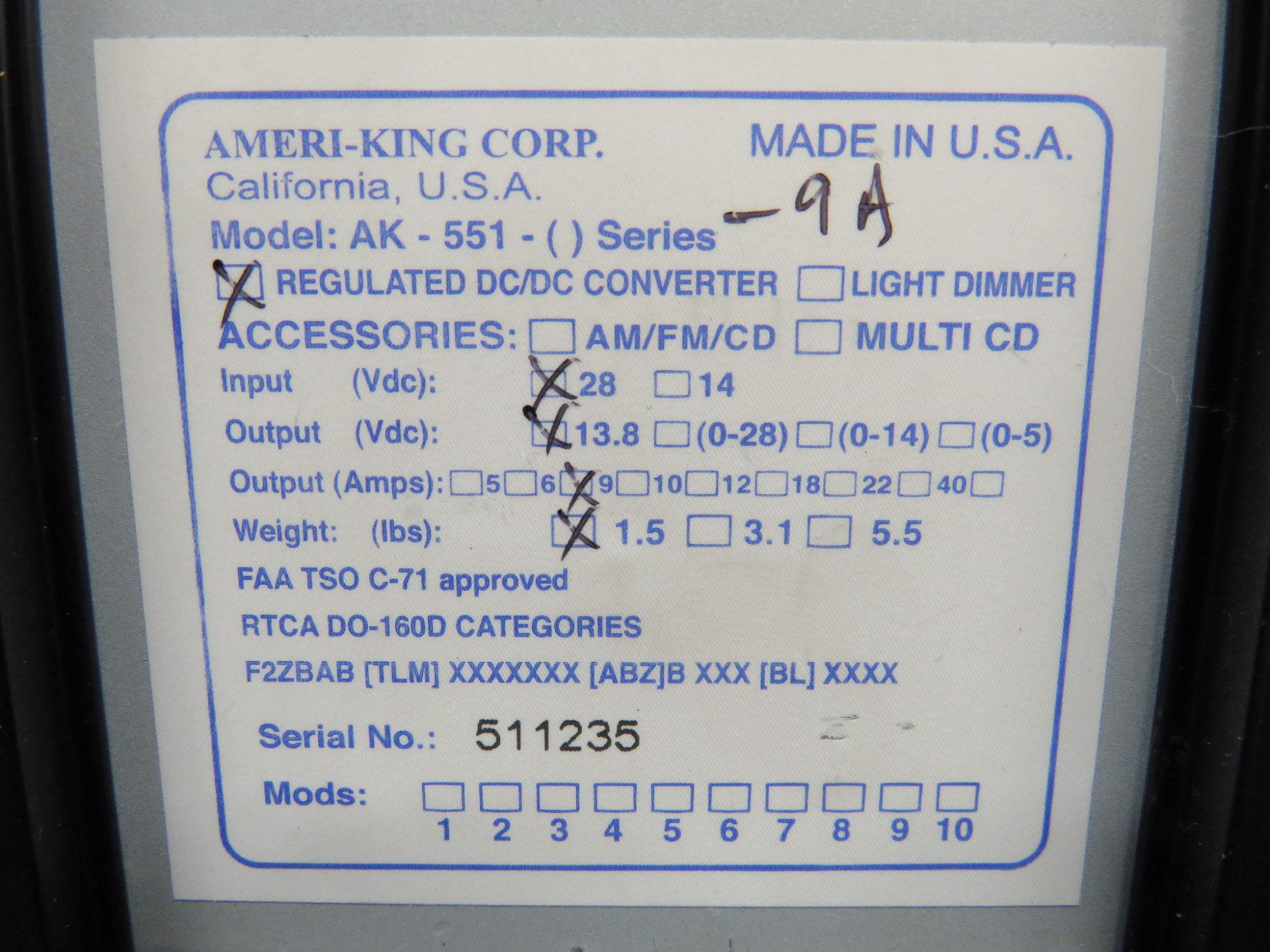 - Part Number: AK-551-9A
