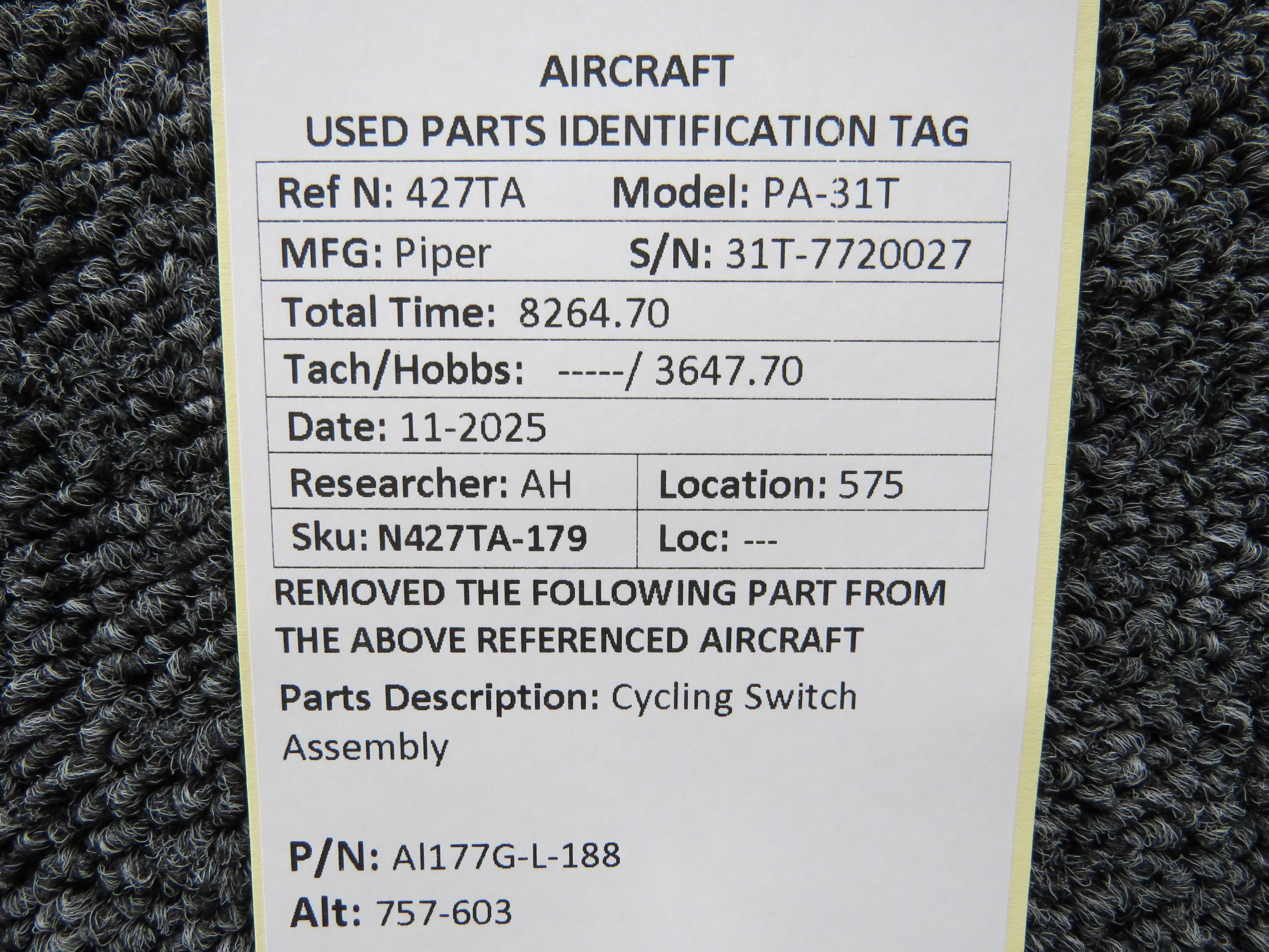 Unless specifically noted, most of our used airplane parts are sold in the condition they were removed, which means you should expect the usual signs of wear and tear.