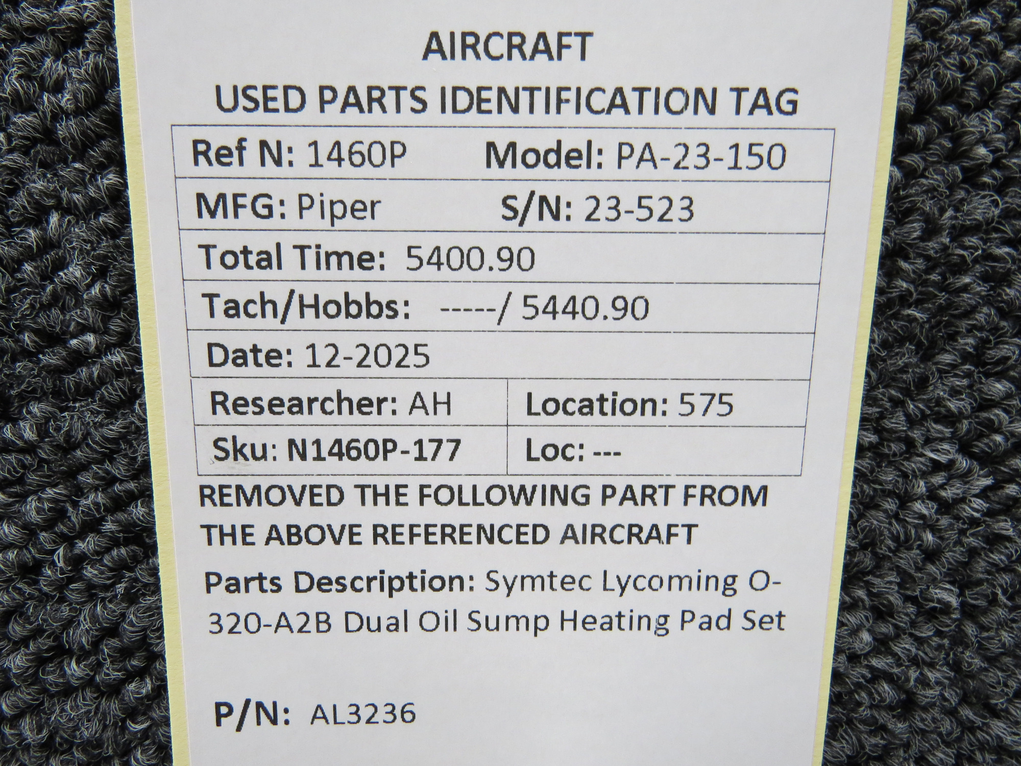 - Removed From: Lycoming O-320-A2B