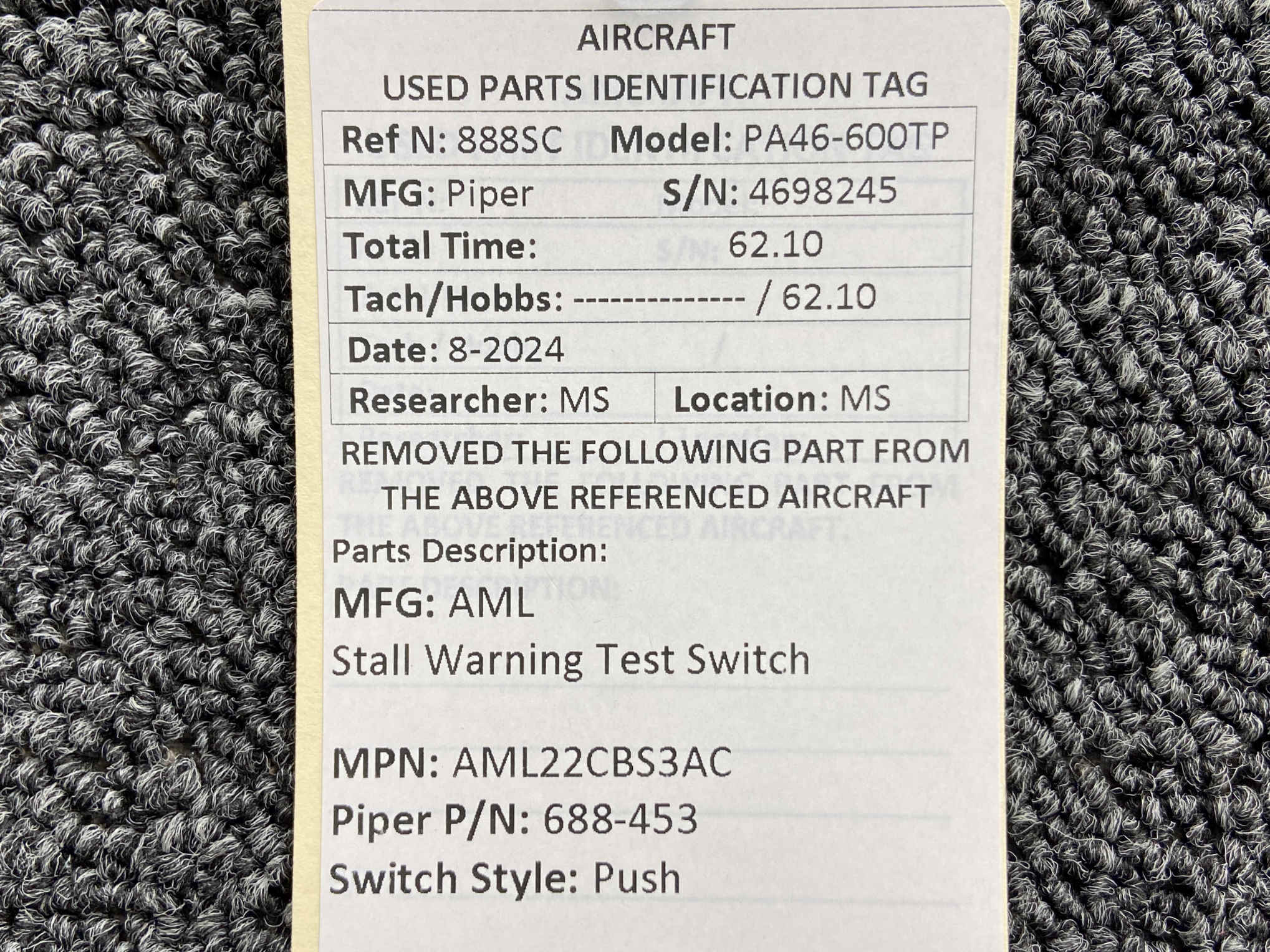Part removed from aircraft in its original, unaltered state. Most of the inventory available from BAS Part Sales is in As-Removed condition. We removed it from the aircraft in working condition and expect it to pass inspection. As-Removed items come with our 90-day Money-Back Guarantee. Read More