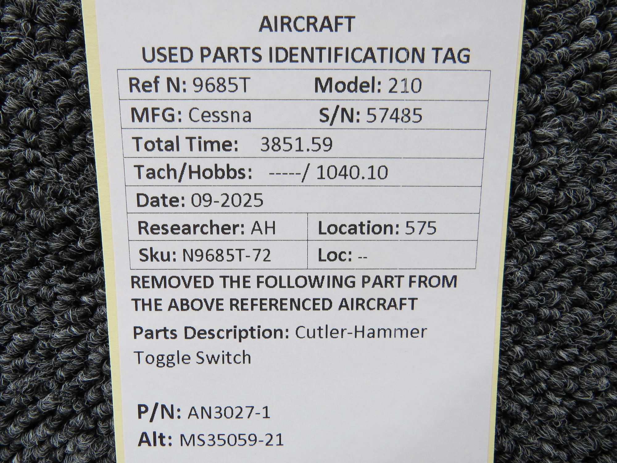 Unless specifically noted, most of our used airplane parts are sold in the condition they were removed, which means you should expect the usual signs of wear and tear.