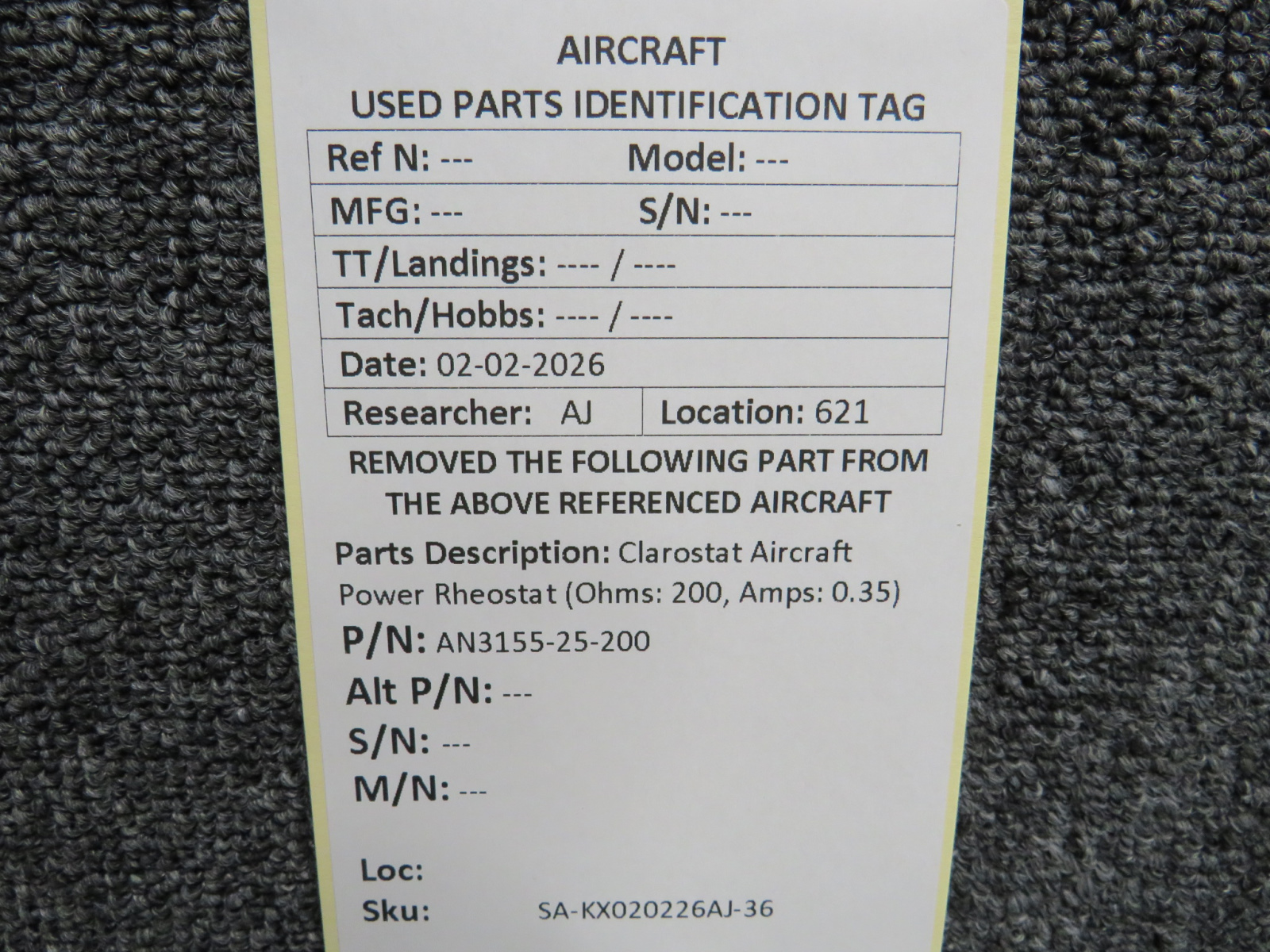 Unless specifically noted, most of our used airplane parts are sold in the condition they were removed, which means you should expect the usual signs of wear and tear.