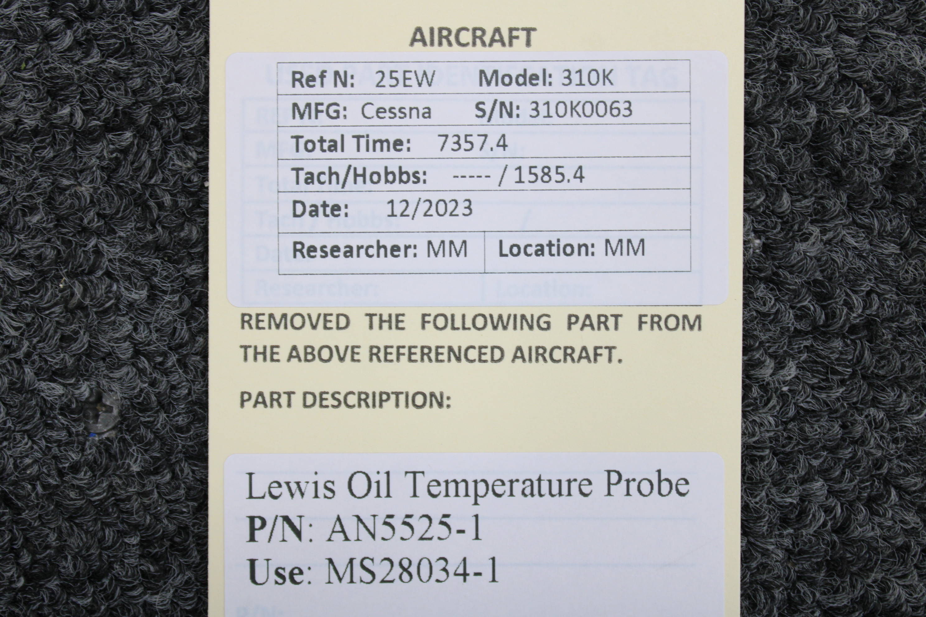 - Use Part Number: MS28034-1