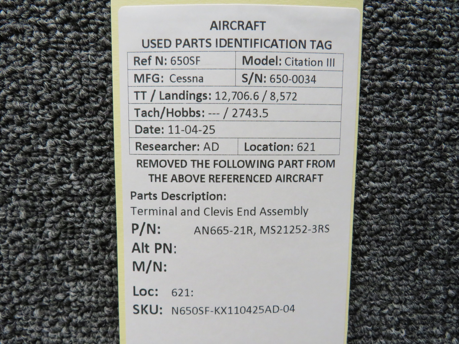 Unless specifically noted, most of our used airplane parts are sold in the condition they were removed, which means you should expect the usual signs of wear and tear.