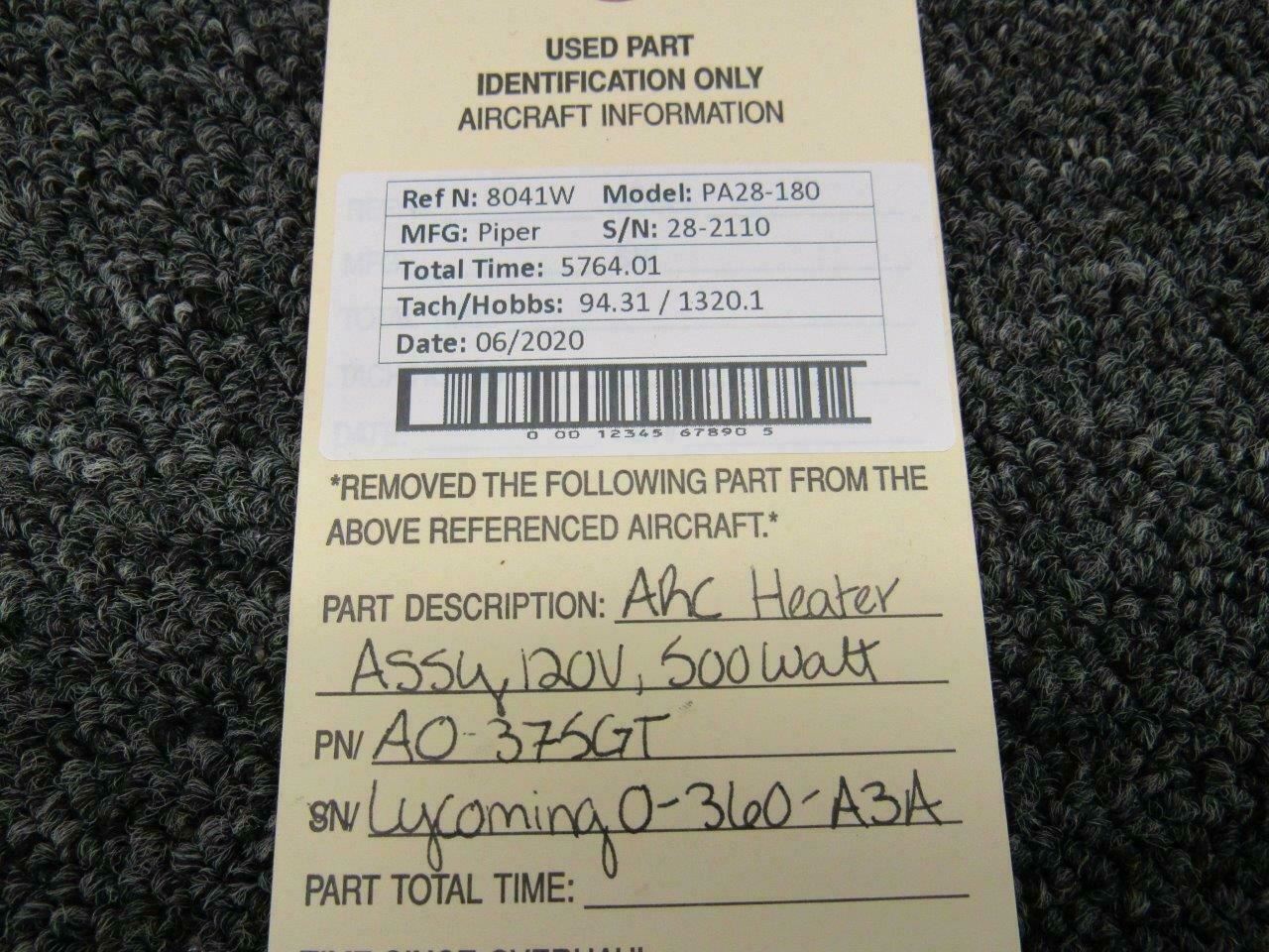 AO-375GT Piper PA28-180 Lycoming O-360-A3A ARC Heater Pad Assy (Volts: 120)