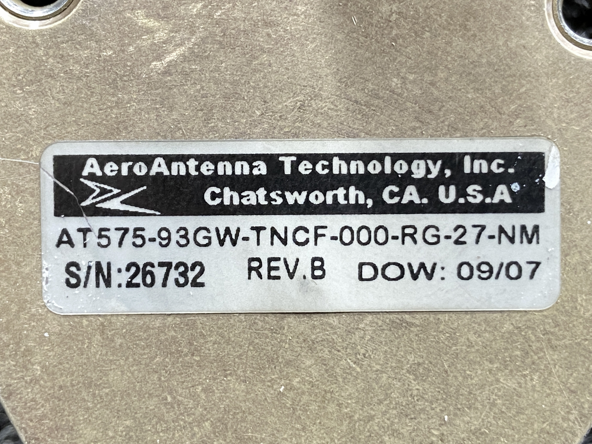 - AeroAntenna Part Number: AT575-93GW-TNCF-000-RG-27