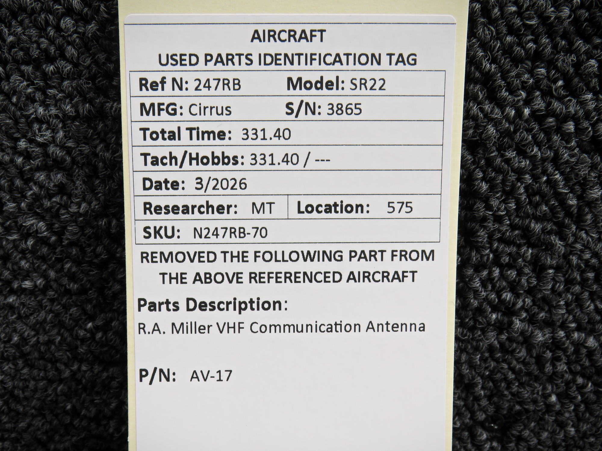 Every part is carefully inspected throughout our process and several times before it goes online. Most items are sold as-removed, just as they came off the aircraft. These parts are not functionally tested. What we do provide is clear photos, full traceability when available, pricing that reflects the as-removed condition, and a no-nonsense 90-day return window.