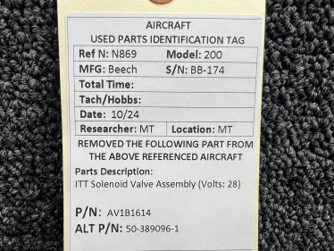 Part removed from aircraft in its original, unaltered state. Most of the inventory available from BAS Part Sales is in As-Removed condition. We removed it from the aircraft in working condition and expect it to pass inspection. As-Removed items come with our 90-day Money-Back Guarantee. Read More