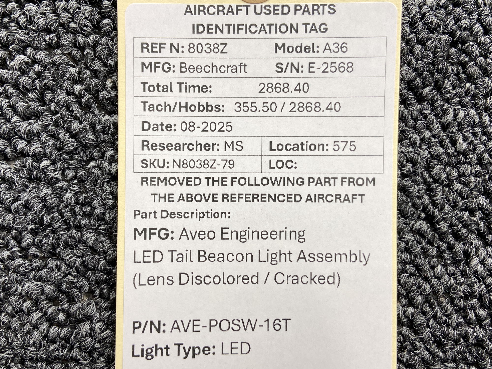Unless specifically noted, most of our used airplane parts are sold in the condition they were removed, which means you should expect the usual signs of wear and tear.