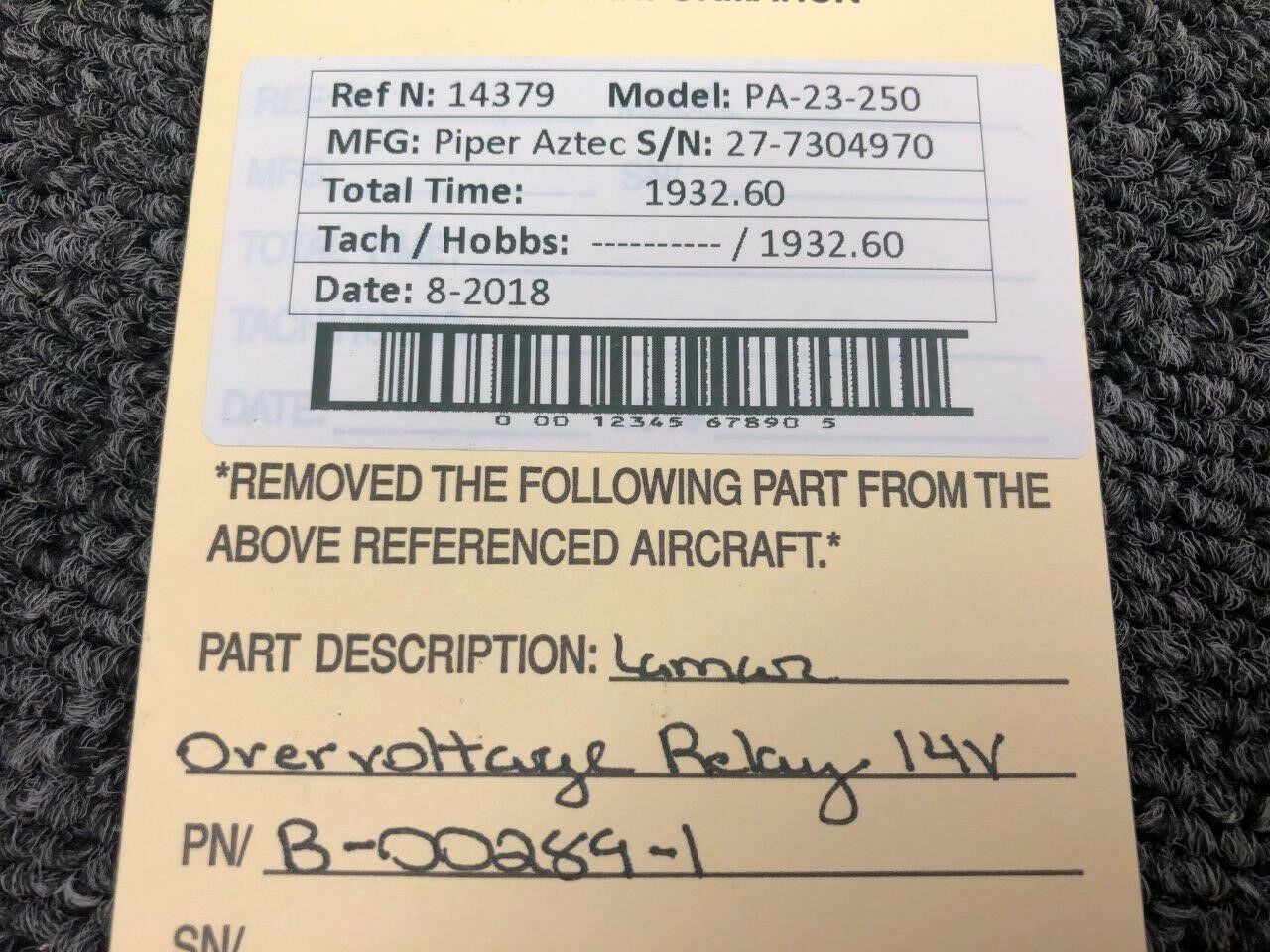 Every part is carefully inspected throughout our process and several times before it goes online. Most items are sold as-removed, just as they came off the aircraft. These parts are not functionally tested. What we do provide is clear photos, full traceability when available, pricing that reflects the as-removed condition, and a no-nonsense 90-day return window.