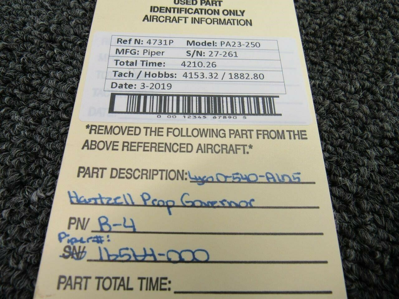 B-4 (Alt: 16564-000) Lycoming O-540-A1D5 Hartzell Propeller Governor