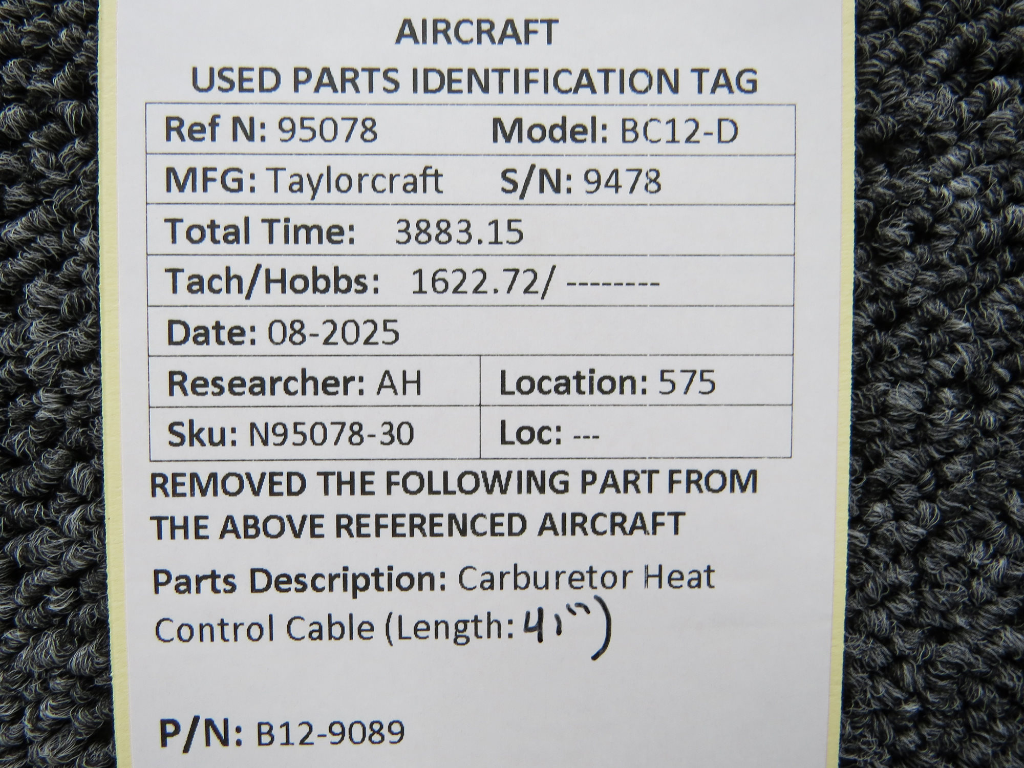 Unless specifically noted, most of our used airplane parts are sold in the condition they were removed, which means you should expect the usual signs of wear and tear.