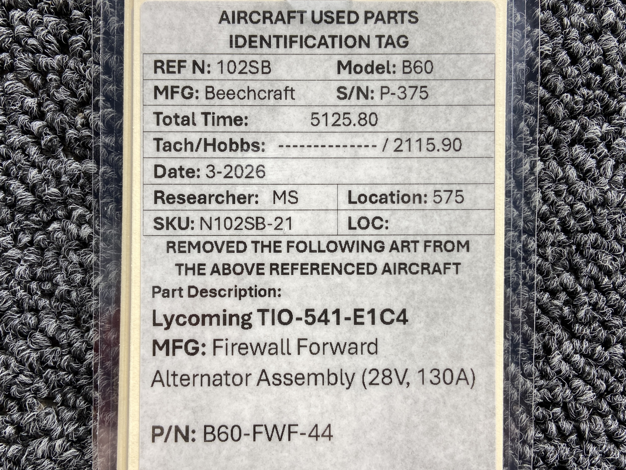 Every part is carefully inspected throughout our process and several times before it goes online. Most items are sold as-removed, just as they came off the aircraft. These parts are not functionally tested. What we do provide is clear photos, full traceability when available, pricing that reflects the as-removed condition, and a no-nonsense 90-day return window.