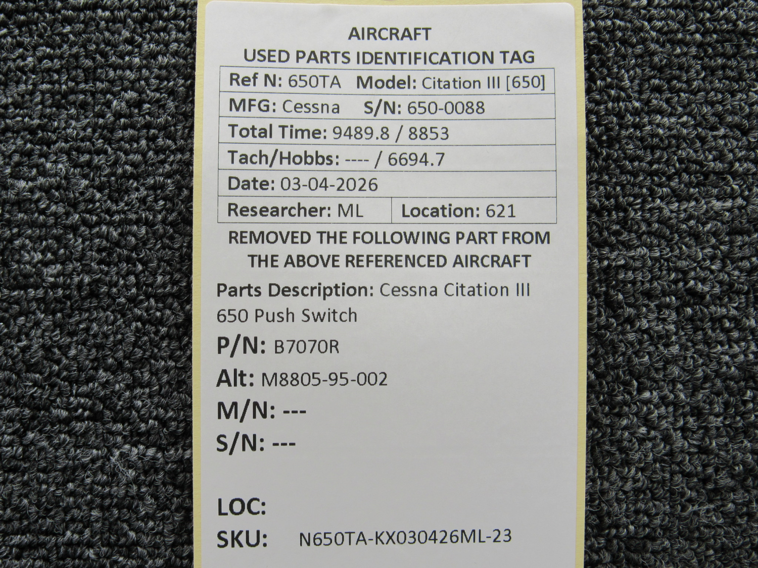 Every part is carefully inspected throughout our process and several times before it goes online. Most items are sold as-removed, just as they came off the aircraft. These parts are not functionally tested. What we do provide is clear photos, full traceability when available, pricing that reflects the as-removed condition, and a no-nonsense 90-day return window.