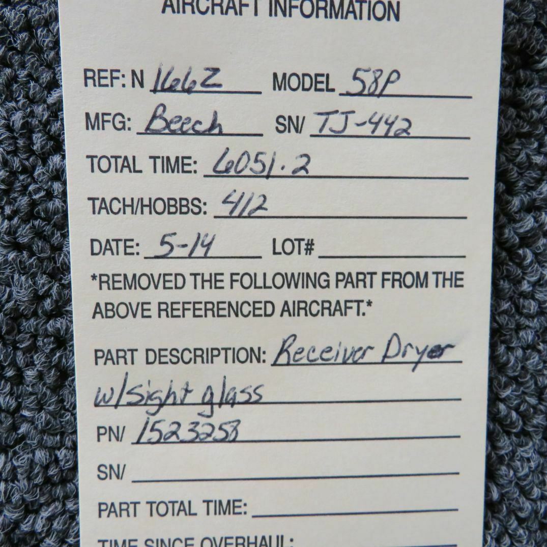 Beechcraft Baron 58P Receiver Dryer w/ Sight Glass P/N 1523258