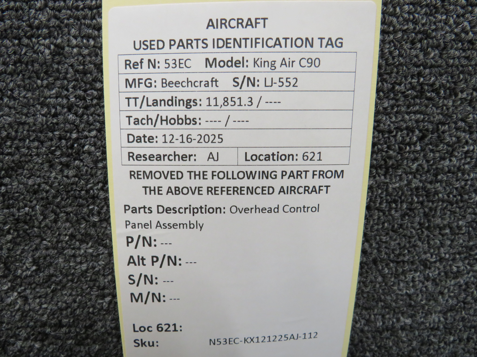 Every part is carefully inspected throughout our process and several times before it goes online. Most items are sold as-removed, just as they came off the aircraft. These parts are not functionally tested. What we do provide is clear photos, full traceability when available, pricing that reflects the as-removed condition, and a no-nonsense 90-day return window.