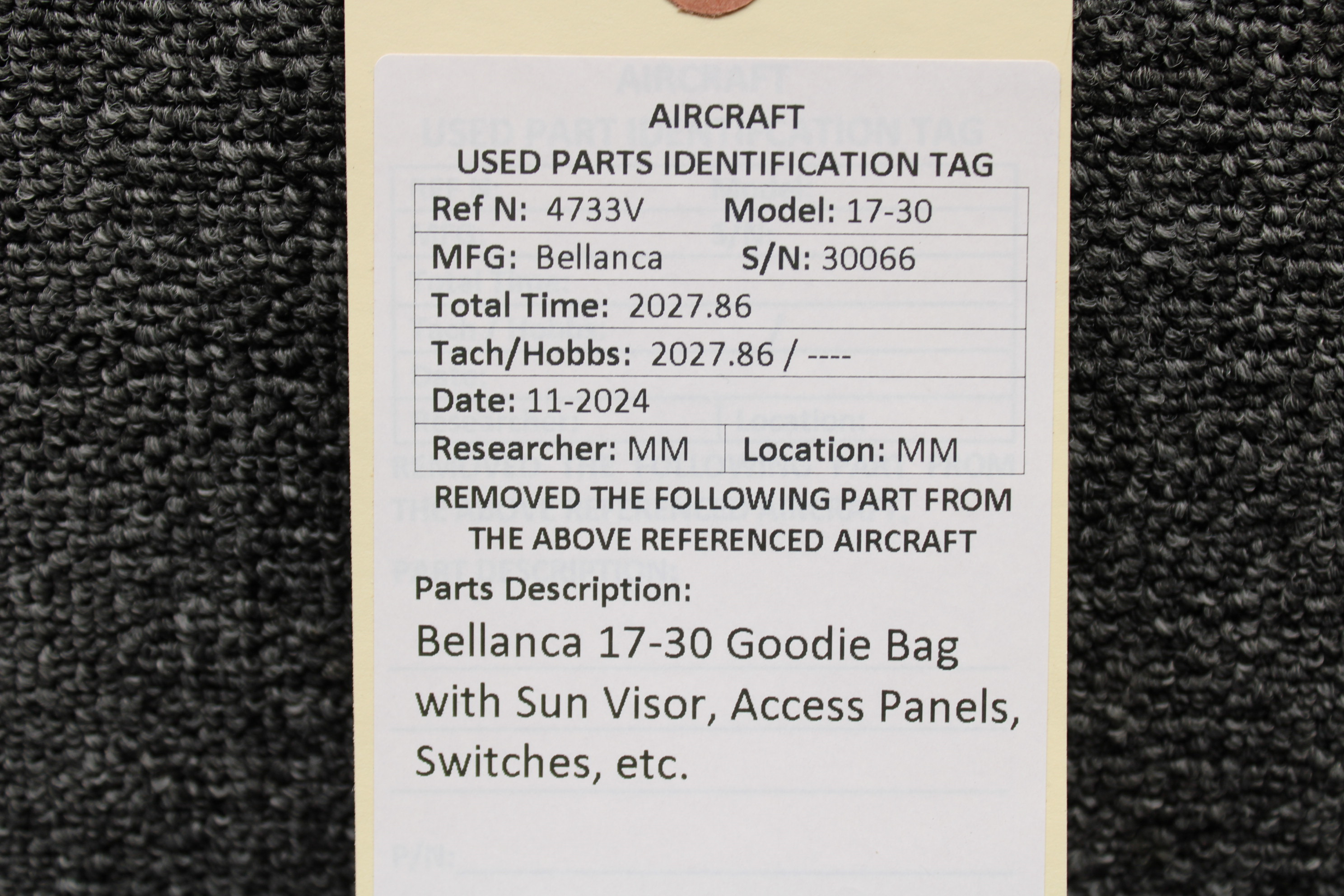 - Includes sun visor, access panels, switches and more for the Bellanca 17-30