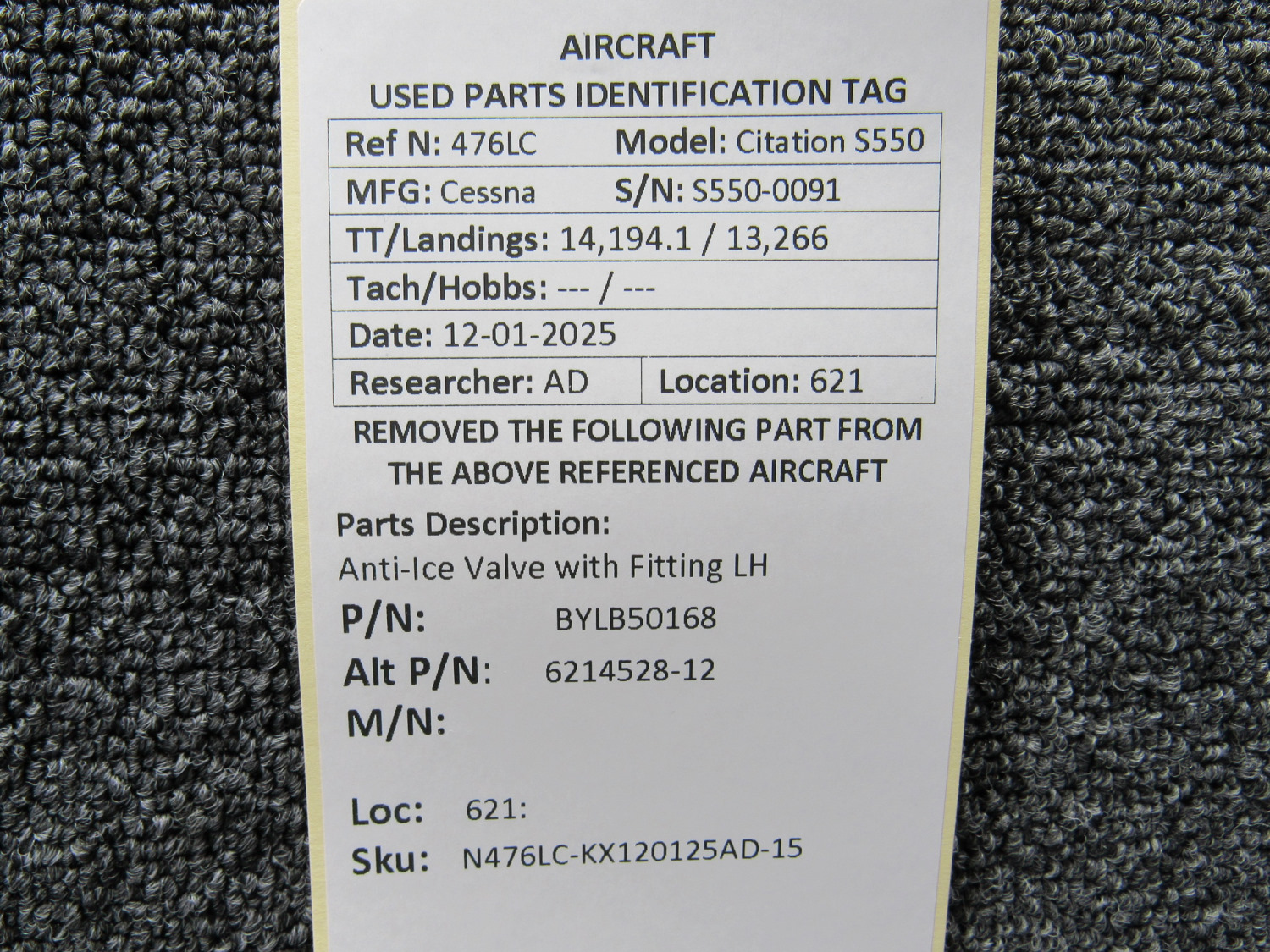 Unless specifically noted, most of our used airplane parts are sold in the condition they were removed, which means you should expect the usual signs of wear and tear.