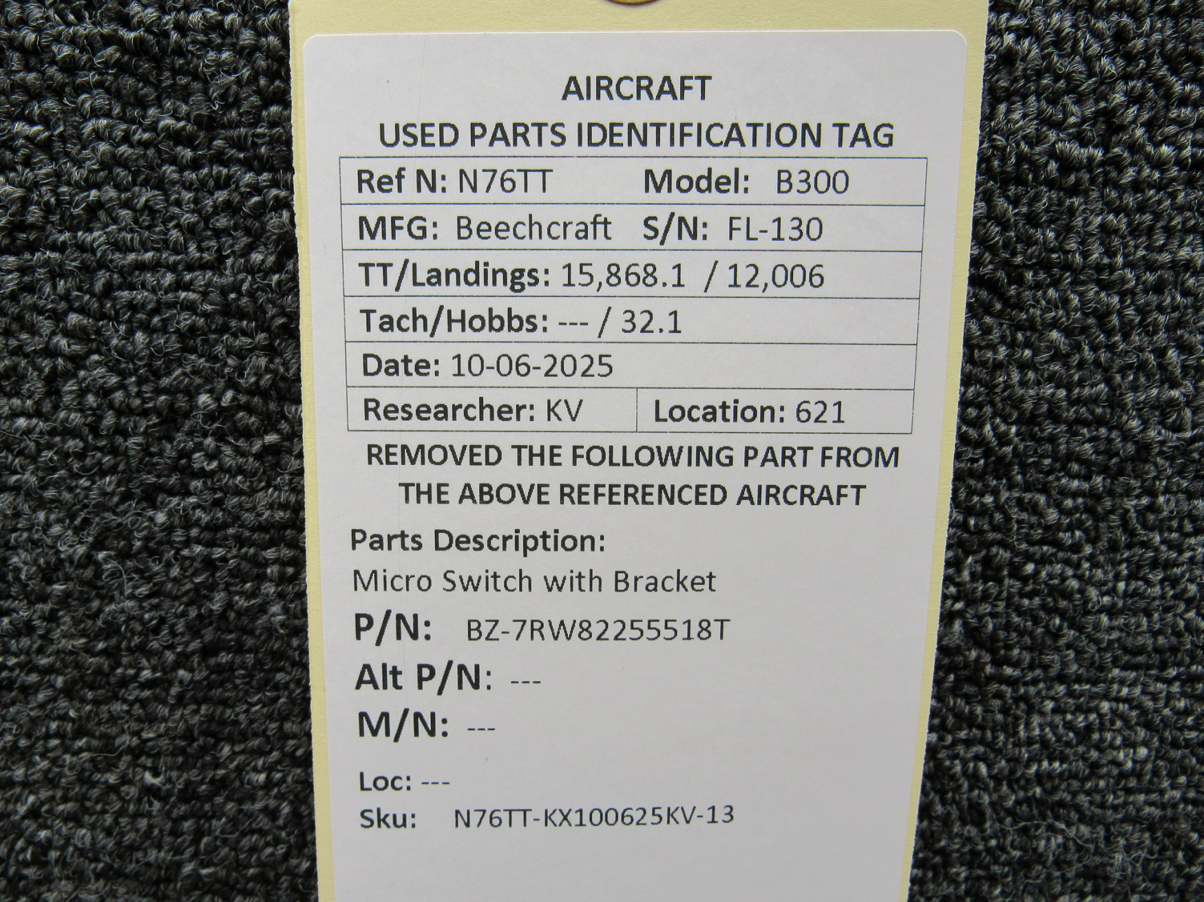 Unless specifically noted, most of our used airplane parts are sold in the condition they were removed, which means you should expect the usual signs of wear and tear.
