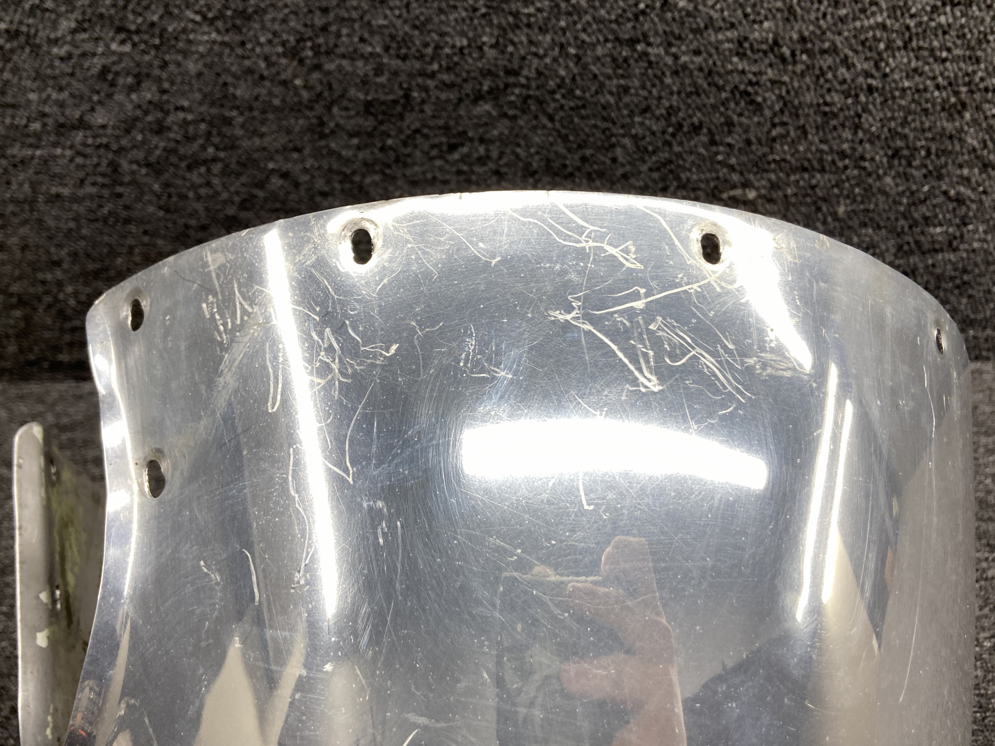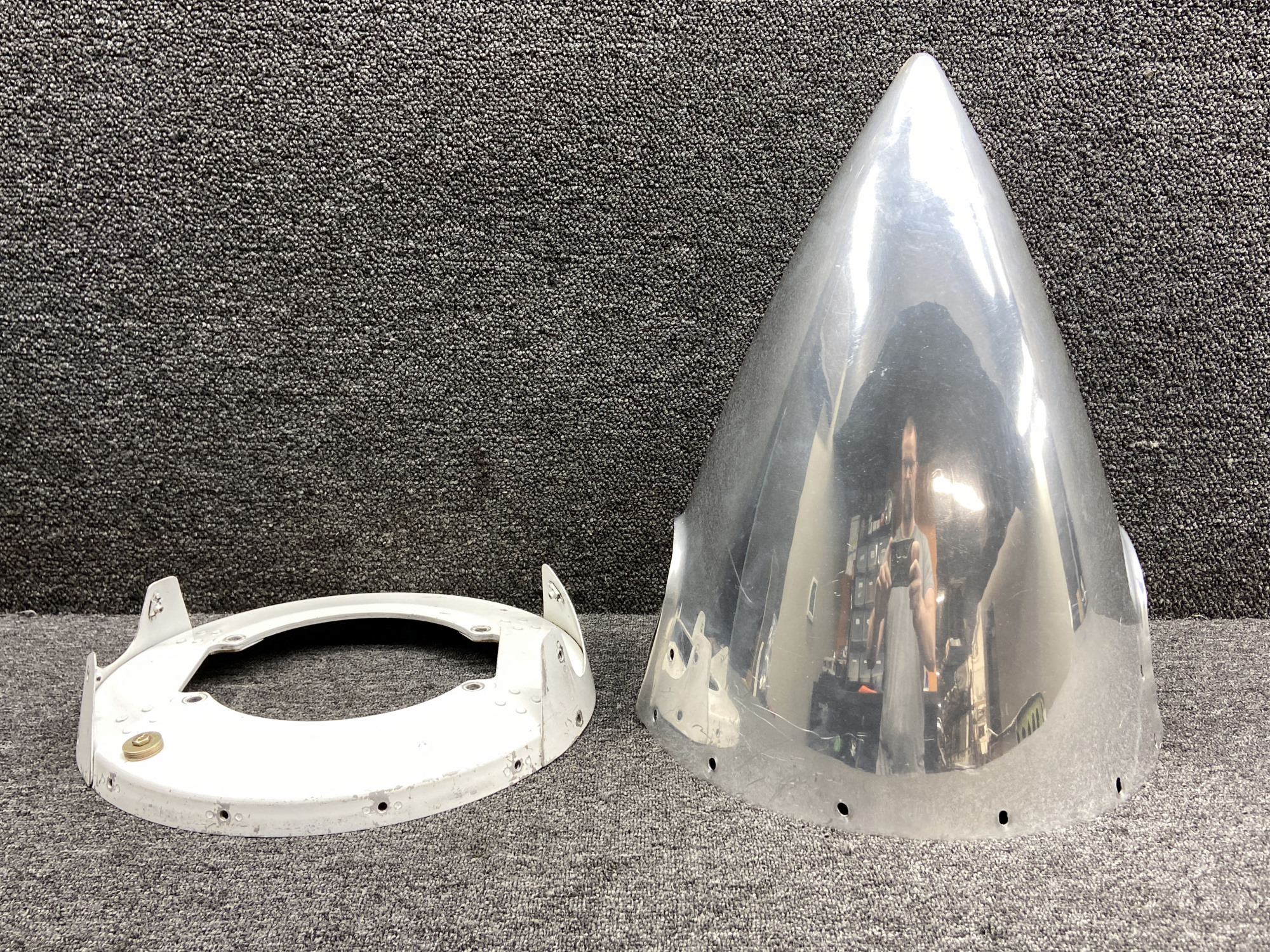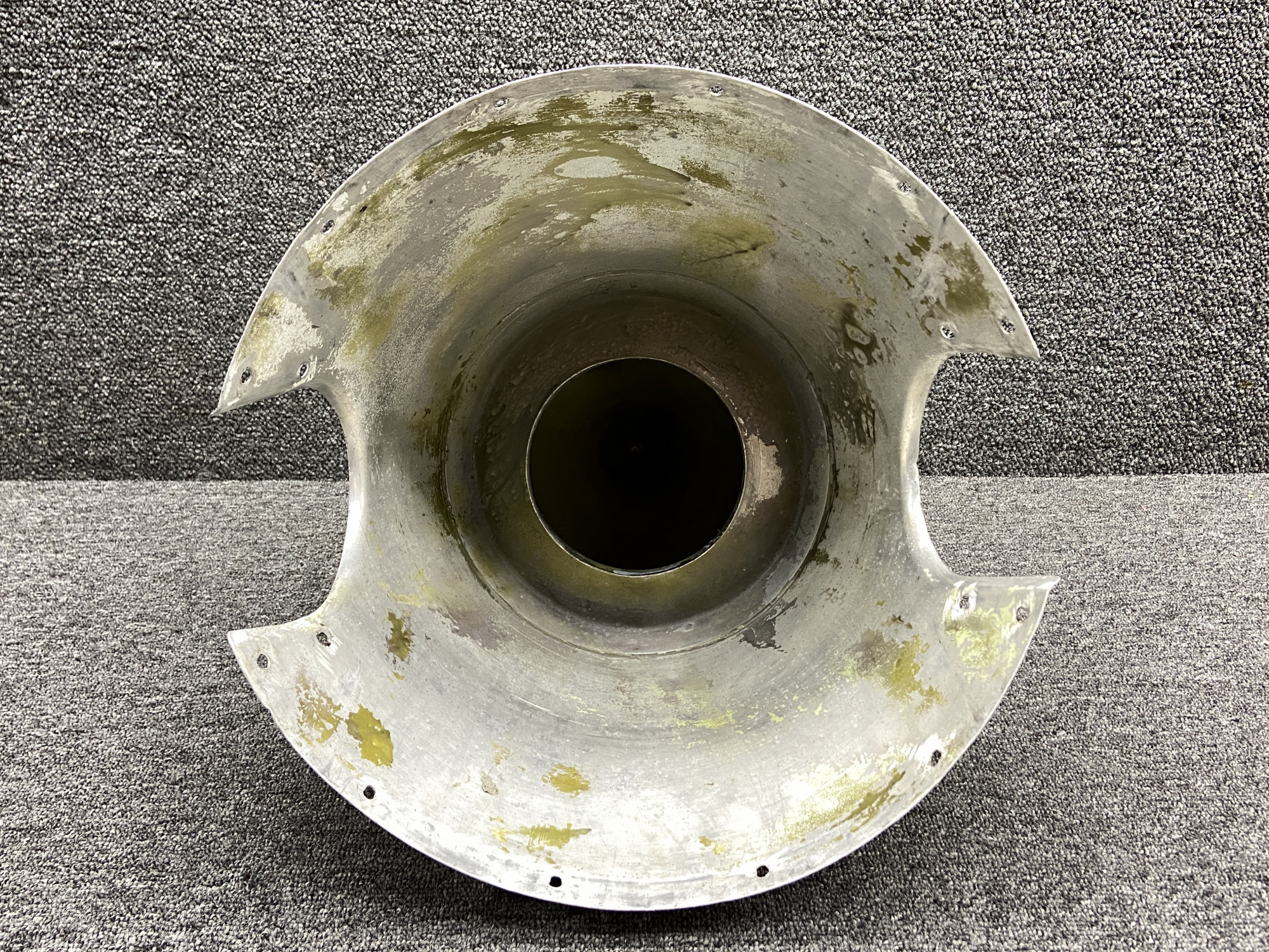 - All mounting holes are enlarged and spinner shell is damaged/scratched, see pictures for more detail
