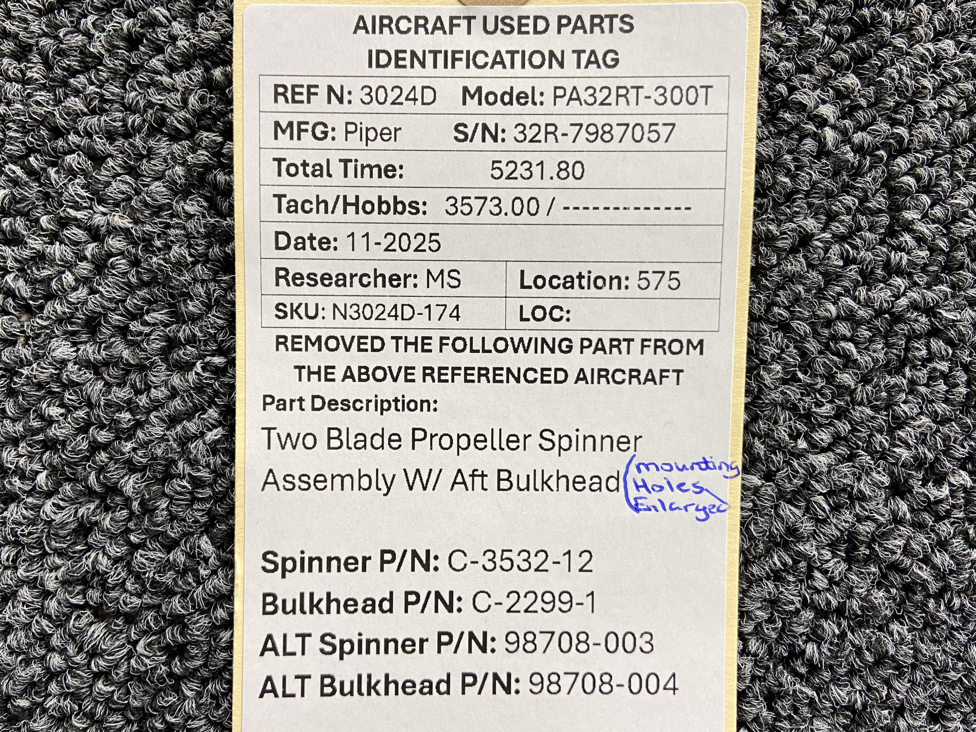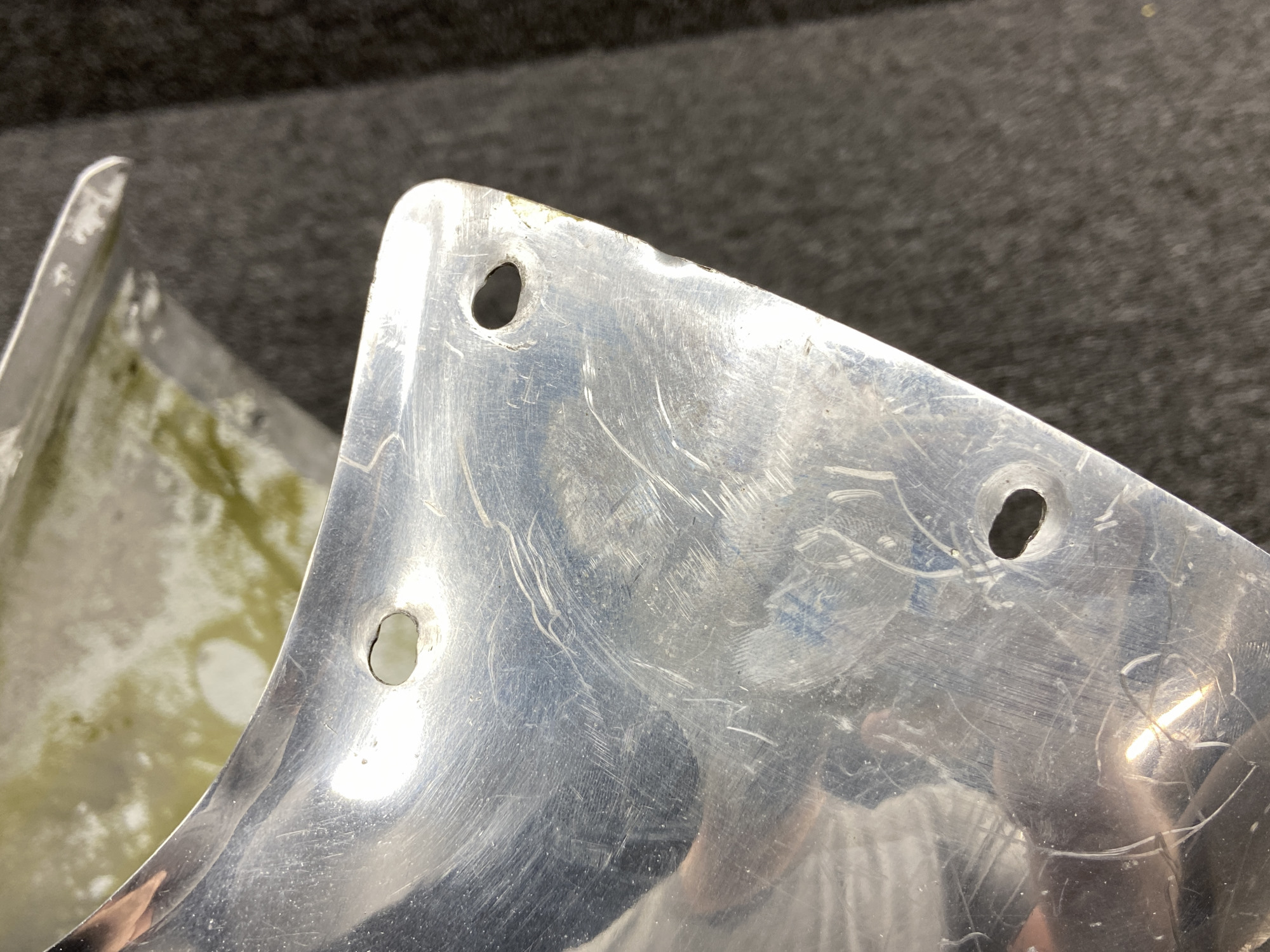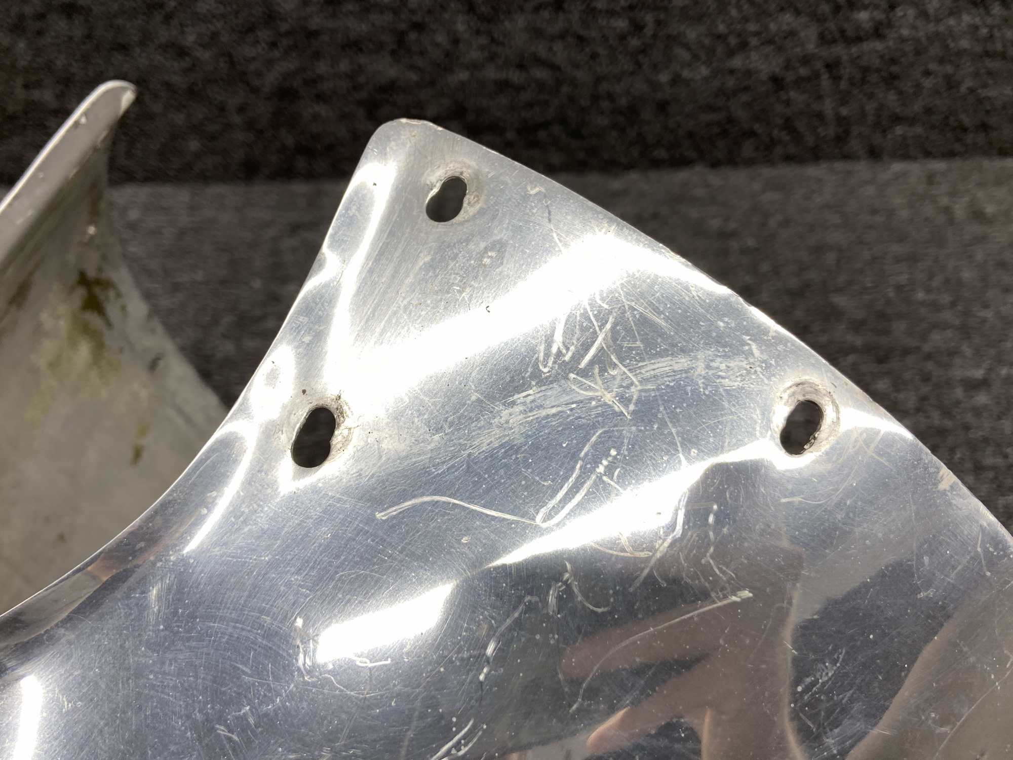 - All mounting holes are enlarged and spinner shell is damaged/scratched, see pictures for more detail