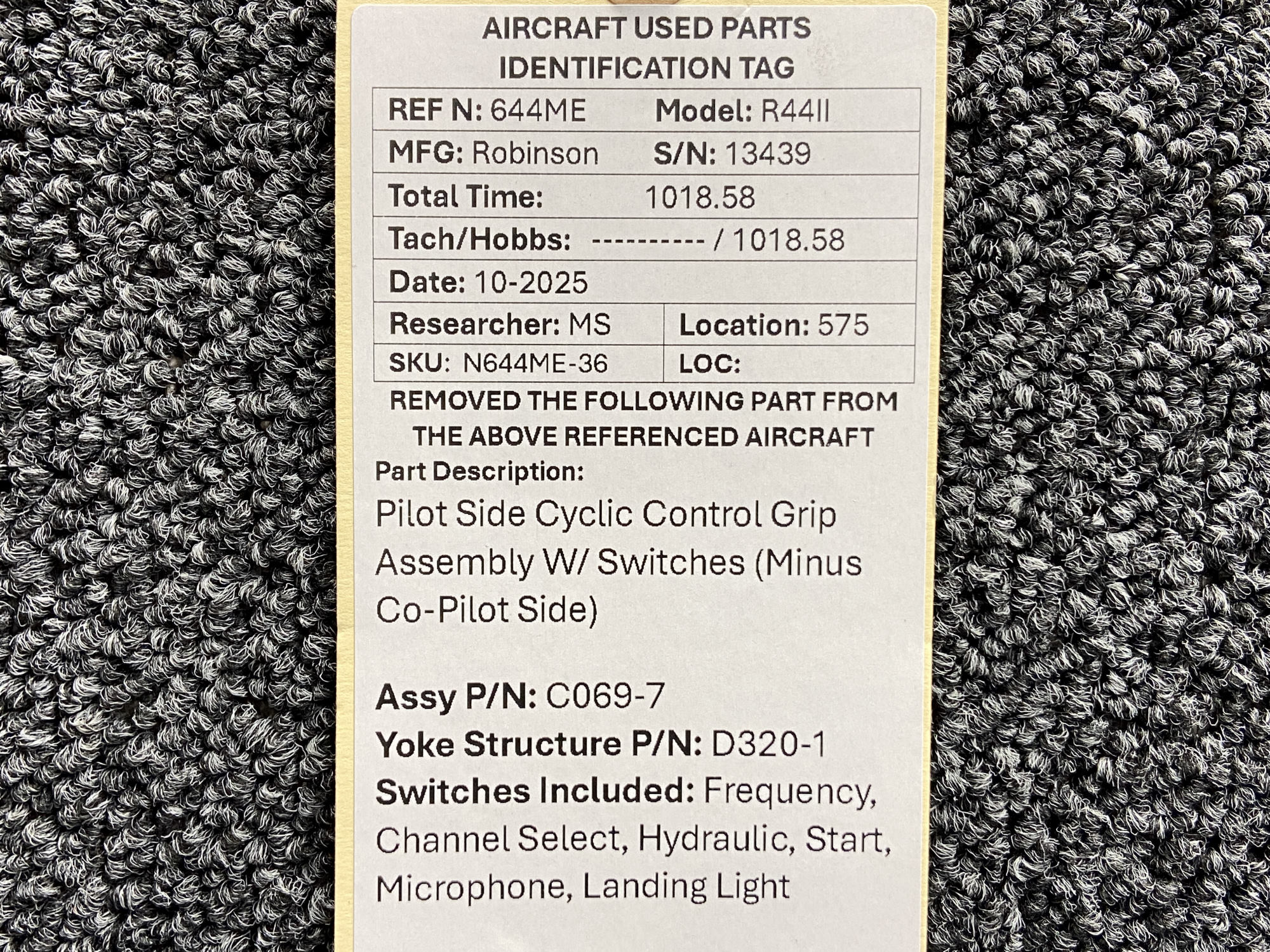 - Switches Included: frequency, channel select, hydraulic, start, microphone and landing light