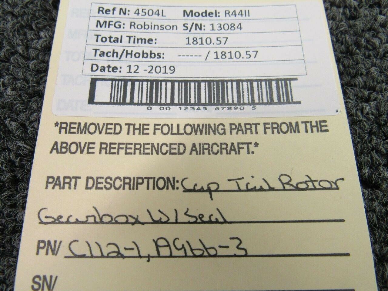 C112-1 / A966-3 Robinson R44 Cap Tail Rotor Gearbox W/ Seal