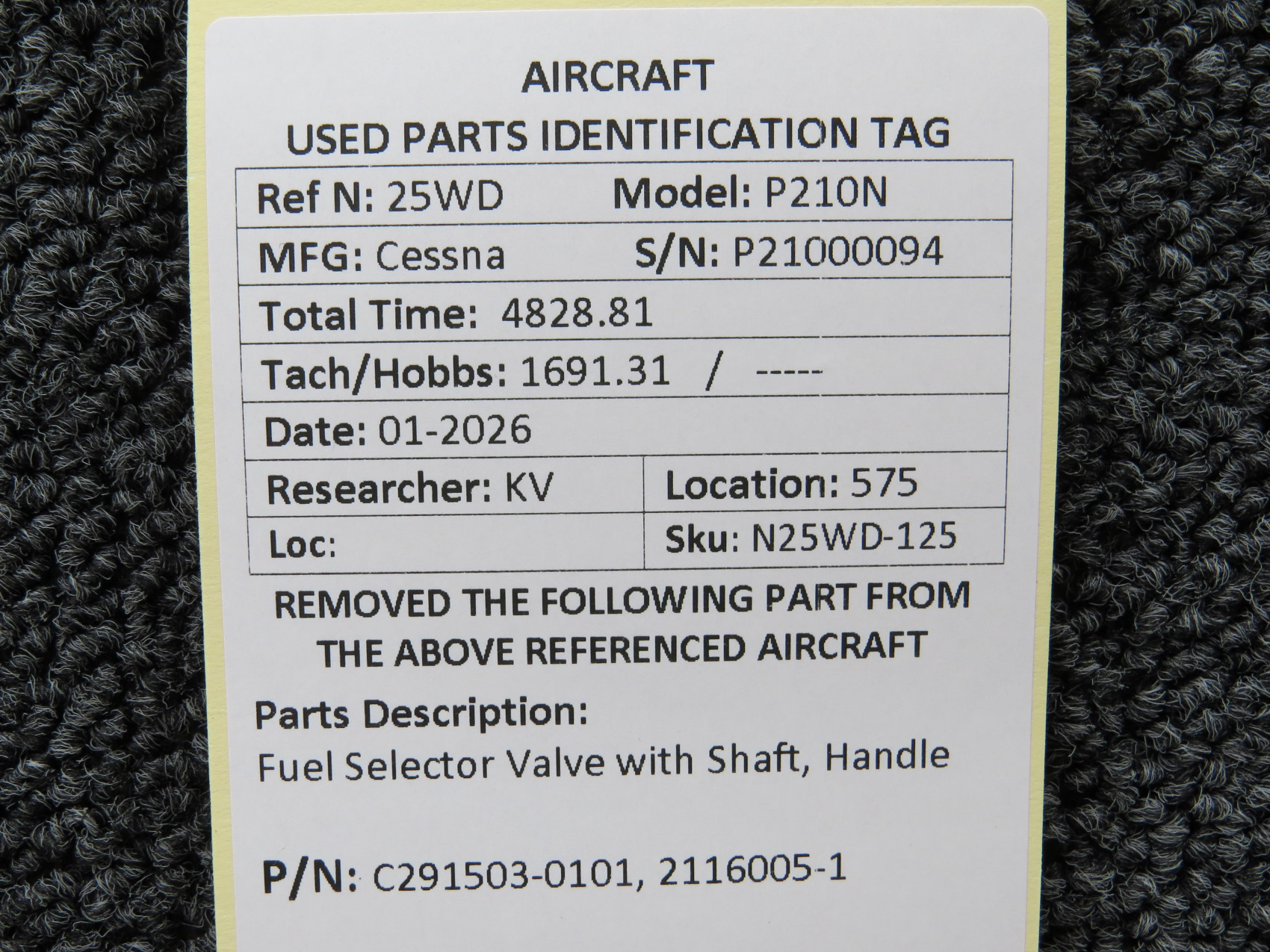 - Valve Part Number: C291503-0101
