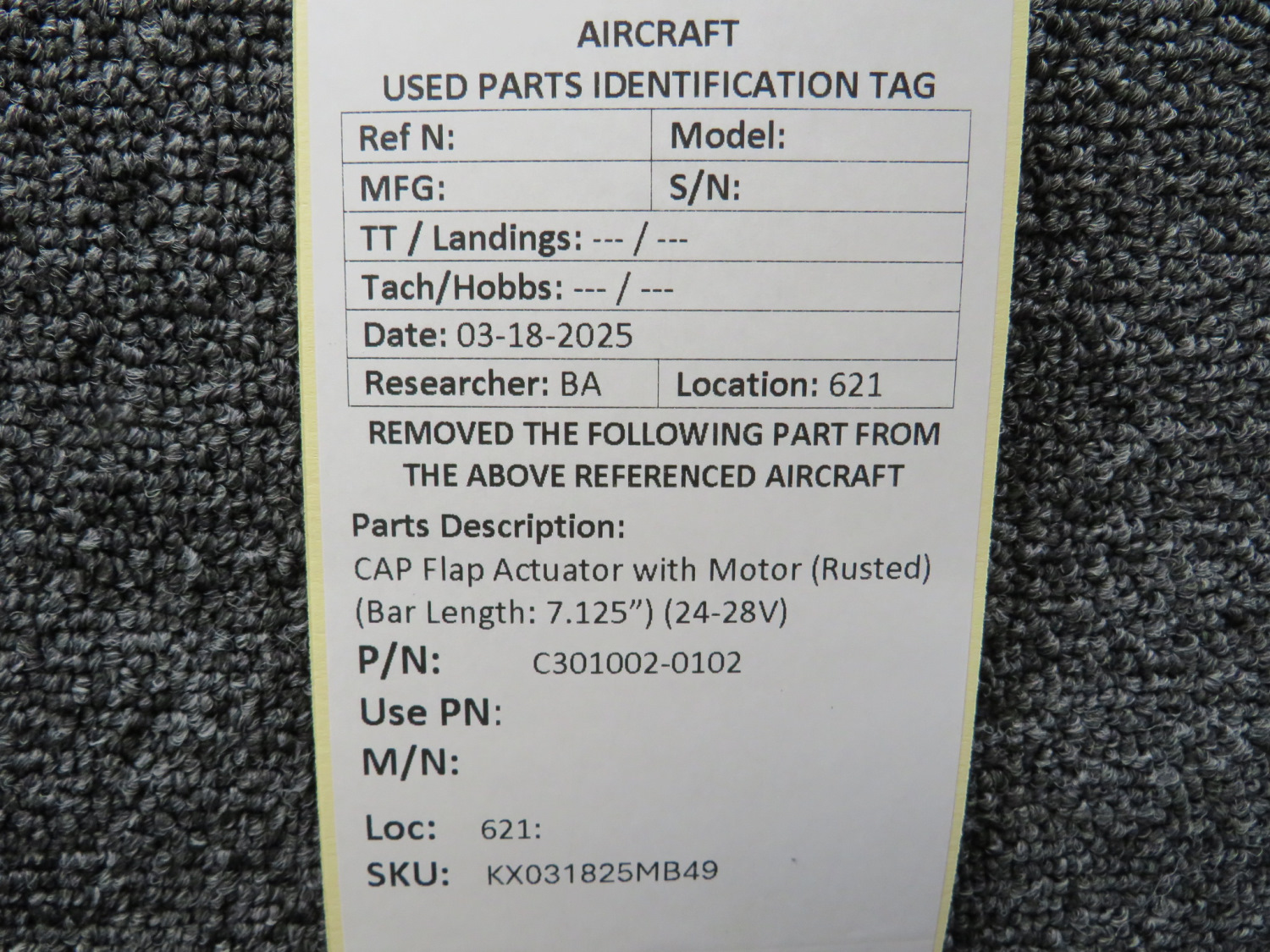 Unless specifically noted, most of our used airplane parts are sold in the condition they were removed, which means you should expect the usual signs of wear and tear.