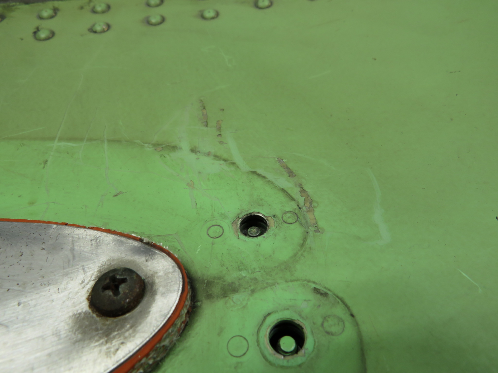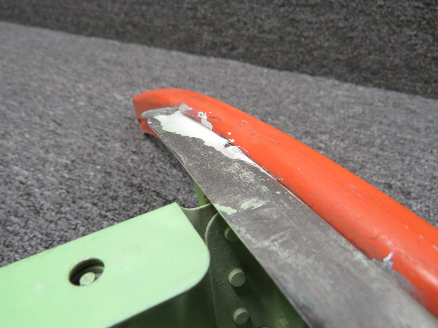 - Dents and damage by orange strip.