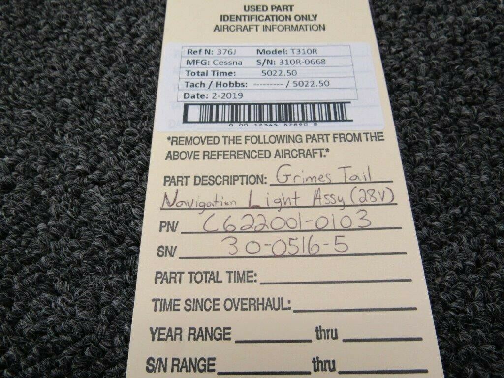 C622001-0103 / 30-0516-5 Cessna T310R Grimes Tail Nav Light Assy (28 Volts)