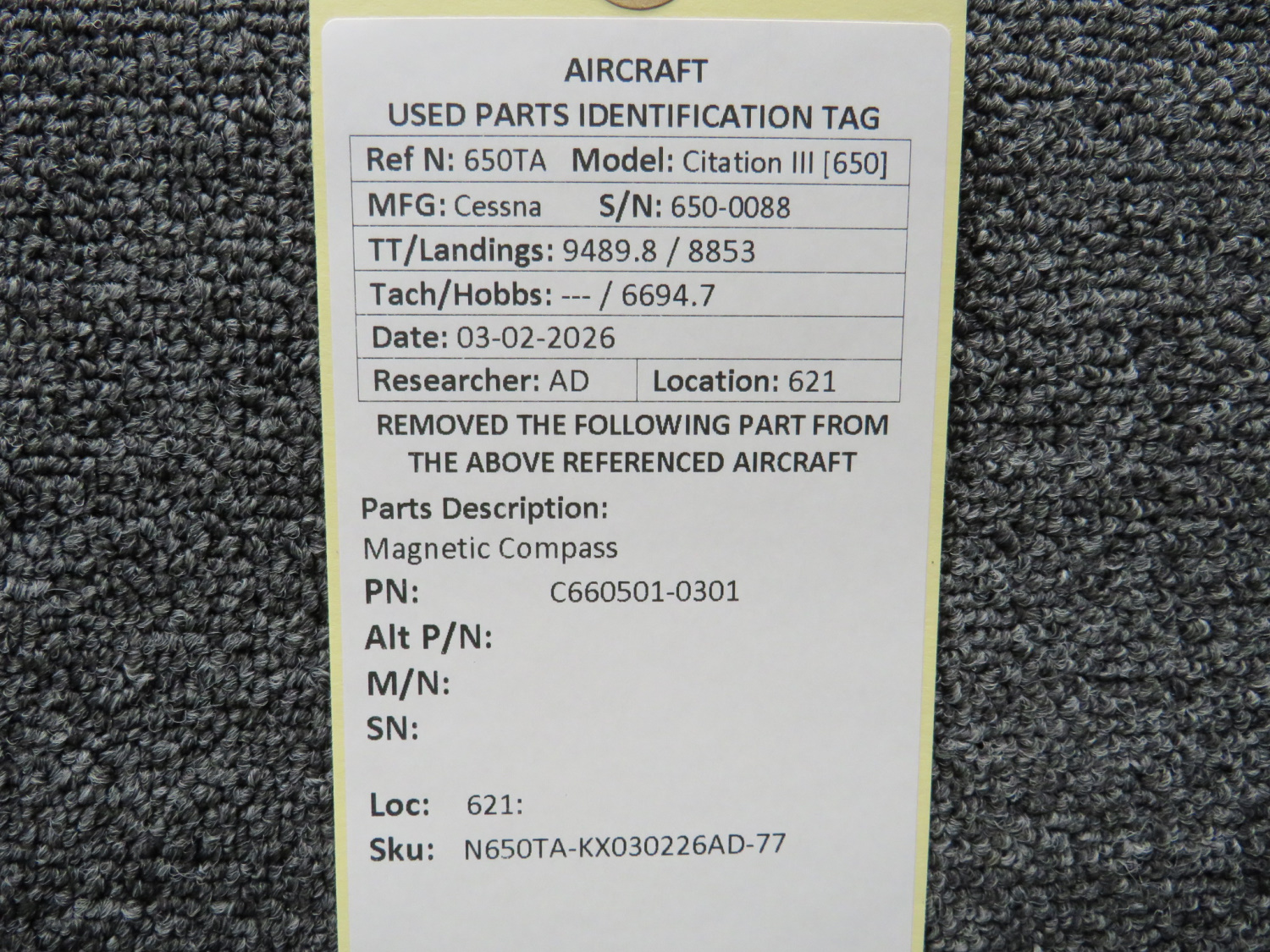 Every part is carefully inspected throughout our process and several times before it goes online. Most items are sold as-removed, just as they came off the aircraft. These parts are not functionally tested. What we do provide is clear photos, full traceability when available, pricing that reflects the as-removed condition, and a no-nonsense 90-day return window.